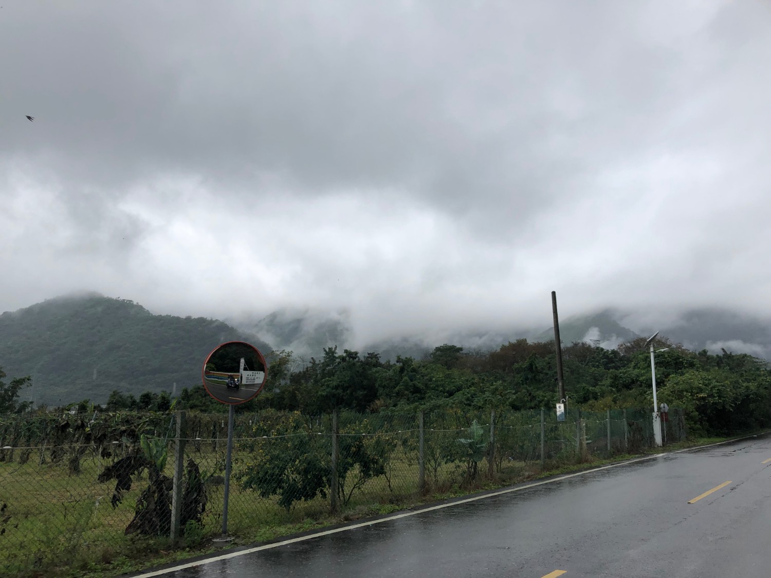 บรรยากาศข้างทางระหว่างขี่รถ สภาพอากาศวันนั้นคือมืดครึ้มทั้งวัน มีฝนตกปรอยๆ แต่ก็ไม่เป็นอุปสสรคต่อการเดินทางของเรา