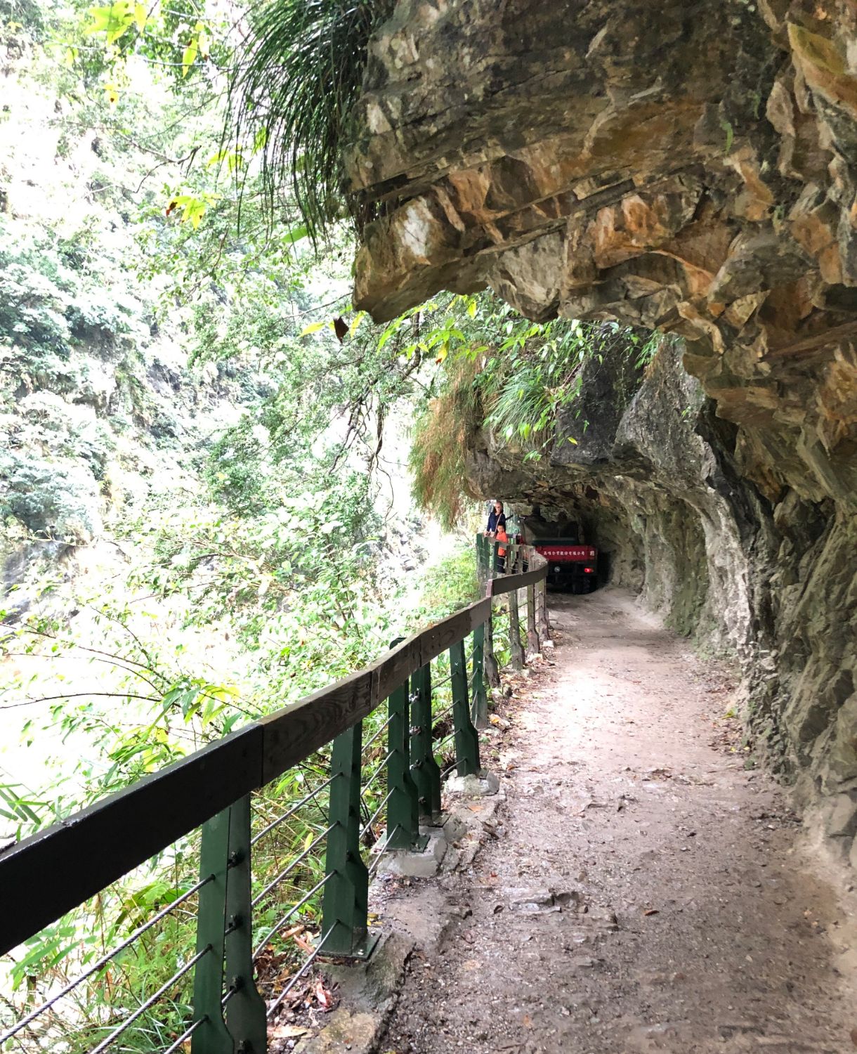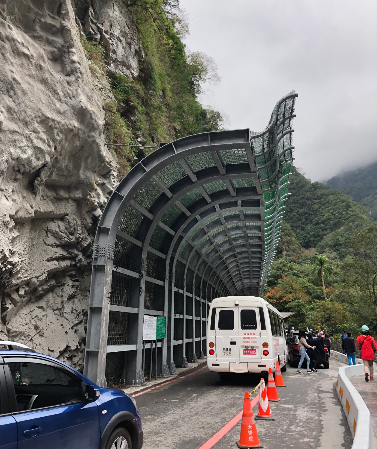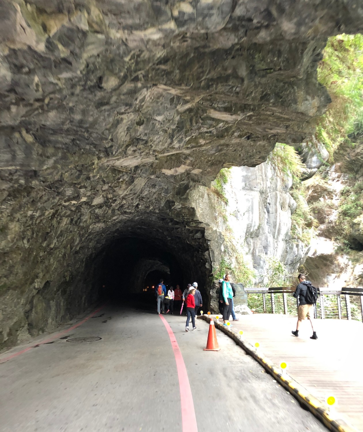 จะเห็นว่าผมใส่หมวกกันน็อคเดิน เพราะกลัวหินหล่นใส่ครับ กันไว้ก่อนดีกว่าครับ ซึ่งในช่วงที่มีฝนตก อาจจะมีดินสไลด์และหินร่วงลงมาบ้าง แต่โอกาสเกิดก็น้อยมาก เนื่องจากที่นี่เขามีการป้องกันที่ดีครับ ส่วนสำหรับคนมากับทัวส์ หรือขึ้นรถบัส ก่อนถึงจุดนี้เขาจะมีหมวกแจกให้ครับ