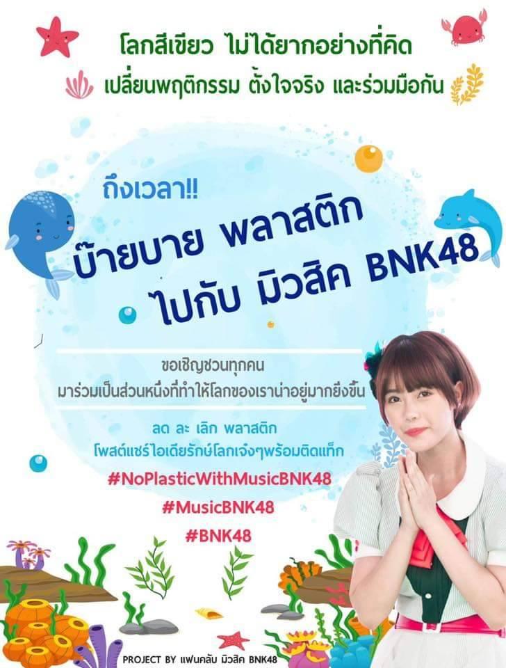 ทั้งนี้ กิจกรรม บ๊าบบายพลาสติกไปกับมิวสิคBNK48 ไม่จบแค่ตรงนี้นะครับ และทุกคนสามารถทำได้ แม้แต่แค่ทำที่บ้านตัวเอง แค่คนเดียวก็ถือว่ามีส่วนร่วมแล้วครับ มาร่วมกันเยอะๆนะครับ