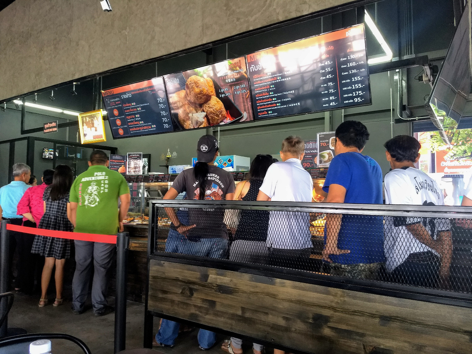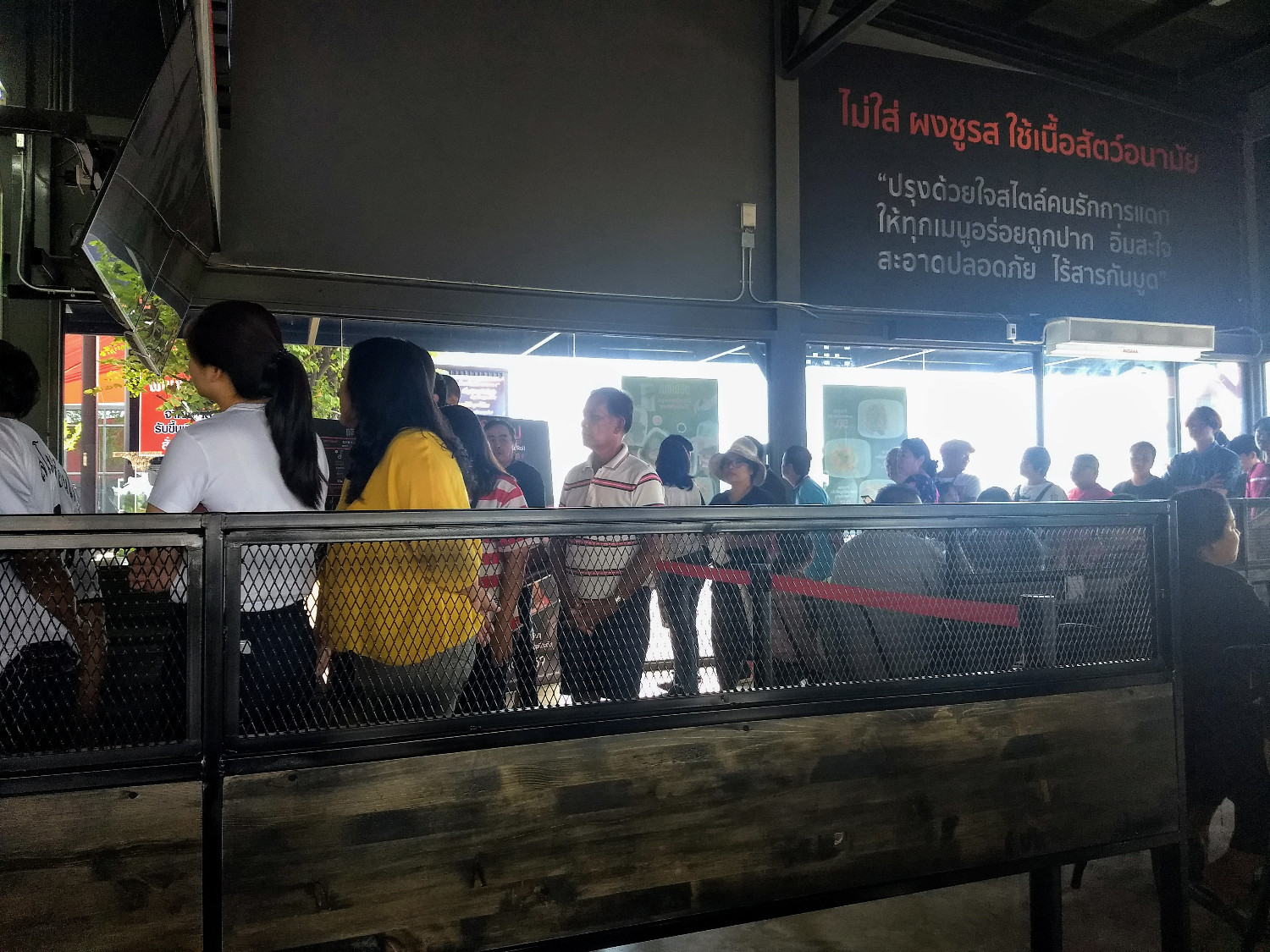 คิวยาวเฟื่อยยยยยยยย ออกไปยันประตูหน้าร้าน ส่วนเรื่องการเก็บกวาดทำความสะอาดโดยรวมภายในร้านถือว่าสะอาดได้มาตรฐาน เป็นร้านระบบแบบดูแลตัวเอง เดินไปต่อคิวสั่งอาหารเอง ให้พนักงานตักอาหารให้ ยกถาดไปที่ cashier คิดเงิน จากนั้นเดินหาที่นั่งเอง กินหมดแล้ว ก็ต้องเอาของไปทิ้งที่ถังขยะเอง ข้างๆถังขยะจะมีโต๊ะวางเครื่องปรุงอย่างพวกพริกน้ำปลา และซอสอื่นๆอีกเล็กๆน้อยๆพร้อมถ้วยและกระดาษทิชซู่ไว้ให้บริการตัวเอง