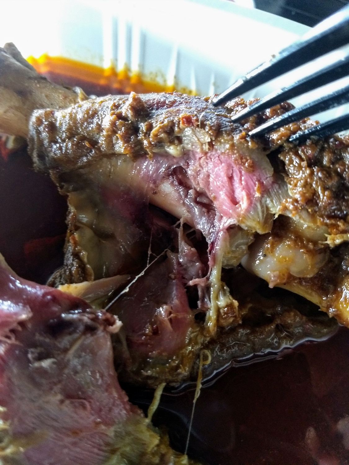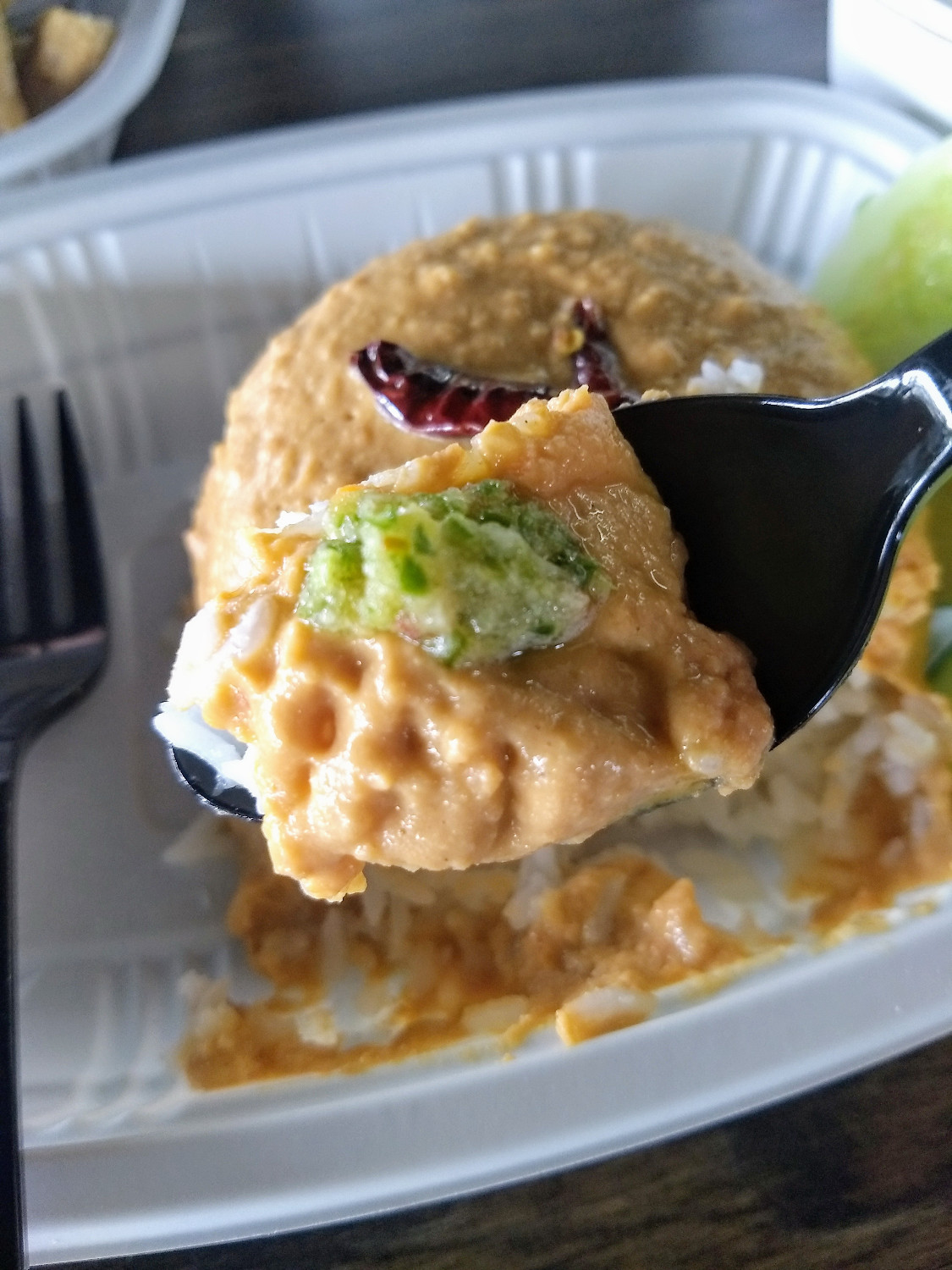 หลังจากชิมแล้ว ต้องนับถือในความเปื่อยนุ่มของขาแกะที่เคี่ยวนานหลายชั่วโมง ไม่ใช่ราคาคุยจริงๆ เปื่อยนุ่มระดับคนแก่ที่ฟันฟางไม่แข็งแรงก็สามารถกินเมนูนี้ได้ เครื่องแกงมัสมั่นแทบจะซึมซับเข้าถึงแกนกลางของกระดูก แต่ข้อเสียของอาหารจานนี้และก็นับเป็นข้อเสียเดียวด้วย ก็คือระดับความมันของน้ำแกง น้ำแกงมัสมั่นถือว่าปรุงรสมาได้โอเคมากๆ ไม่เค็มหรือหวานโดด แต่ความสุดยอดของน้ำแกงกลับถูกบดบังโดยน้ำมันแกงที่ลอยหน้าอยู่เต็มๆชาม กินไปแล้วก็รู้สึกเลี่ยนไป ทั้งๆที่กินกับข้าวสวยเป็นจานๆ แต่ก็ยังร้สึกเลี่ยนมากๆ ความเปื่อยสุดยอด รสชาติสุดยอด แต่ระดับความมันก็สุดยอดด้วยเช่นกัน น้ำมันแกงเคลือบลิ้นจนชุ่มจนแทบจะรับรสอะไรไม่ออก ต้องดื่มน้ำล้างลิ้นตามมากๆ สรุปจานนี้เอาไปประมาณ 4/5