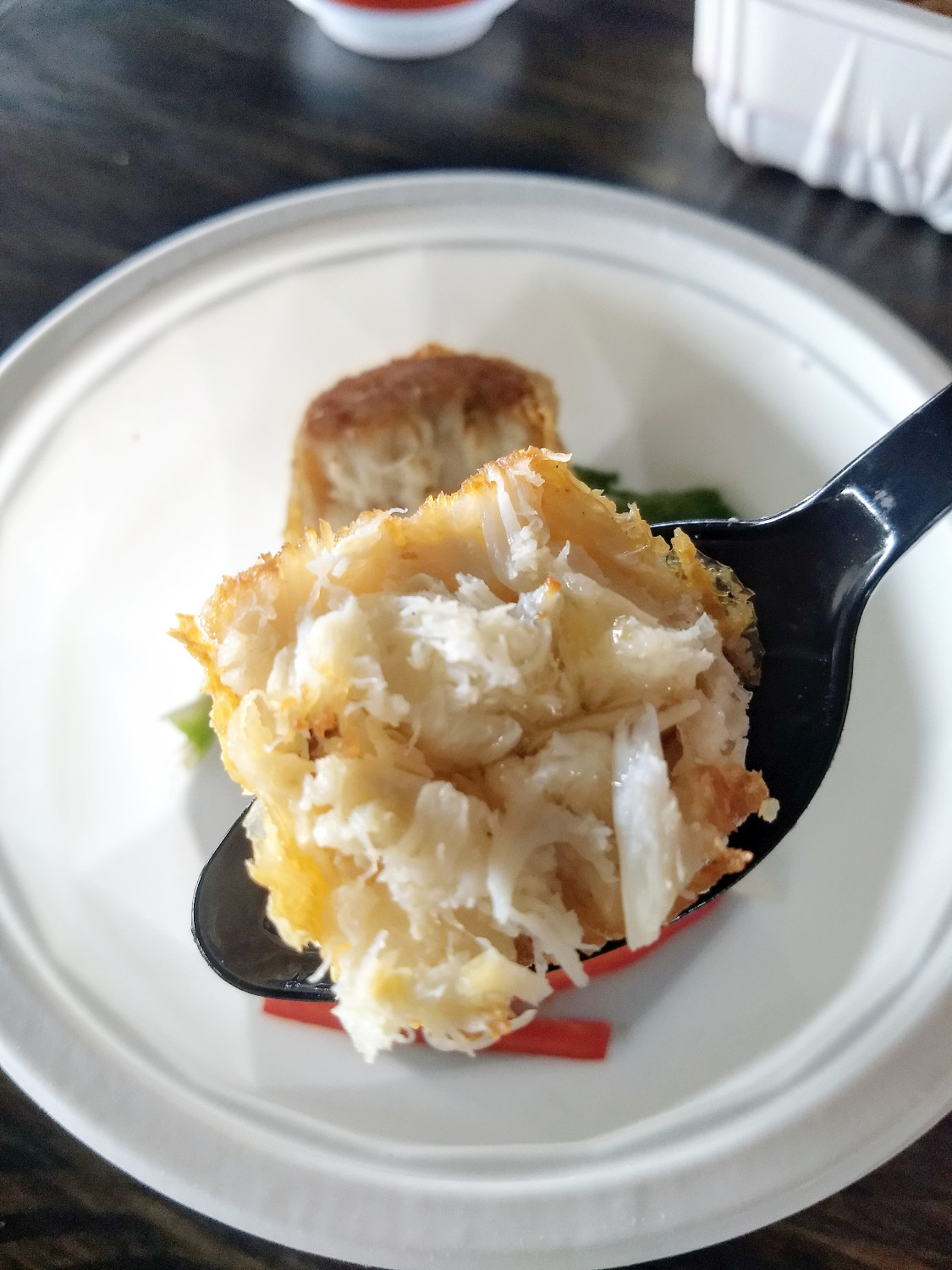 ส่วนเรื่องรสชาติ บอกตามตรงว่าสมคำร่ำลือ ปูเนื้อๆเน้นๆแน่นๆ ผ่าครึ่งออกมาปูทะลักออกมาล้นๆ รสชาติกินแล้วไม่เลี่ยนอย่างที่คิด ไส้ปูปรุงรสมากำลังดี เข้ากันดีมากๆกับน้ำจิ้มบ๊วยหวานๆ เสียดายที่ผิวจ๊อมันไม่ค่อยกรอบ เหมือนจะเน้นจุดขายอยู่ที่ขนาดและความแน่นของไส้ปูมากกว่า ส่วนเรื่องราคาก็แล้วแต่วิจารณญานส่วนบุคคล จานนี้เสือตะหลิวให้ 4/5