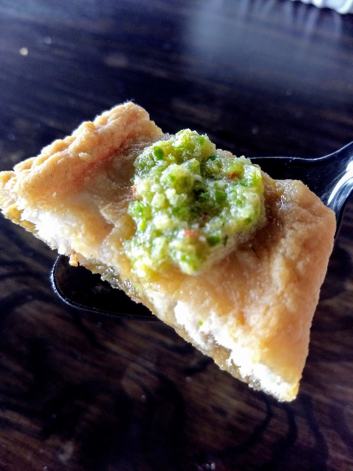 อันนี้พอชิมแล้ว ด้านรสชาติถือว่าโอเค ปลาช่อนไม่เหม็นคาว แต่นั่นก็อาจจะเป็นข้อดีเพียงอย่างเดียวของอาหารจานนี้ เพราะว่าพุงปลาช่อนถูกทอดทิ้งไว้ ผิวเลยไม่มีความกรอบ เนื้อในเริ่มจะแห้งด้าน เวลากินก็ต้องระวังเพราะเนื่องจากเป็นส่วนพุง กางบริเวณท้องปลายังคงสัมผัสและทิ่มแทงเหงือกของเสือตะหลิวอย่างสนุกสนาน จำเป็นต้องเคี้ยวให้ละเอียดมากๆ เนื้อในก็ออกจะด้านๆจึงทำให้การเคี้ยวอาหารจานนี้ไม่มีความบันเทิงแต่อย่างใด แต่ซอสน้ำปลากับน้ำจิ้มซีฟู๊ดอร่อยได้มาตรฐาน จึงขอให้คะแนนอาหารจานนี้ไปอย่างน่าผิดหวังที่ 1/5