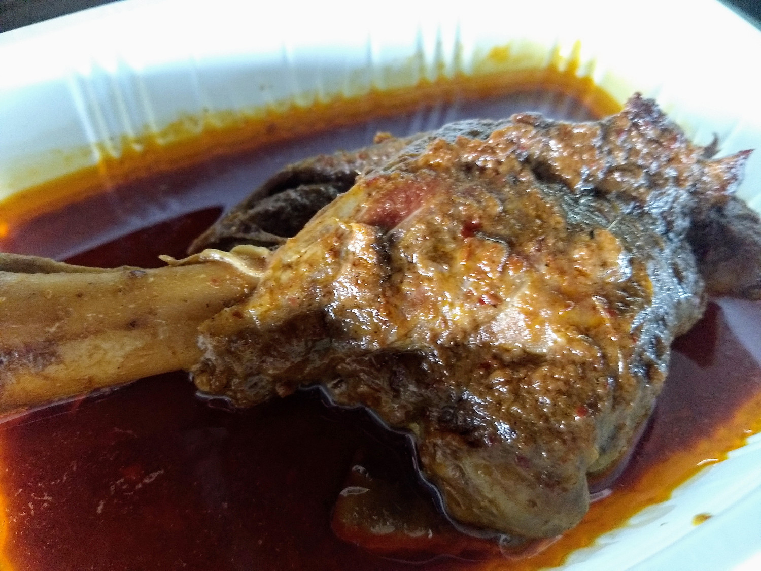 อาหารจานสุดท้ายกันสักที แต่รับรองว่าไม่ใช่แค่อาหารล้างปากแน่นอน เพราะมันคืออาหารจานที่ไฮโซที่สุดในร้าน เป็นอาหารจานที่ทุกคนไม่คิดว่าจะหากินได้ตามร้านข้าวแกงทั่วๆไปได้อย่างแน่นอน จานนั้นก็คือ มัสมั่นขาแกะ สุดอลังการจานละ 475 บาท มาแบบเต็มๆทั้งขา ราดน้ำมัสมั่นมาชุ่มๆ โอเคในเมื่อท้องกับฟันยังมีแรงเหลือเรามาทุ่มสุดตัวกันไปเลย