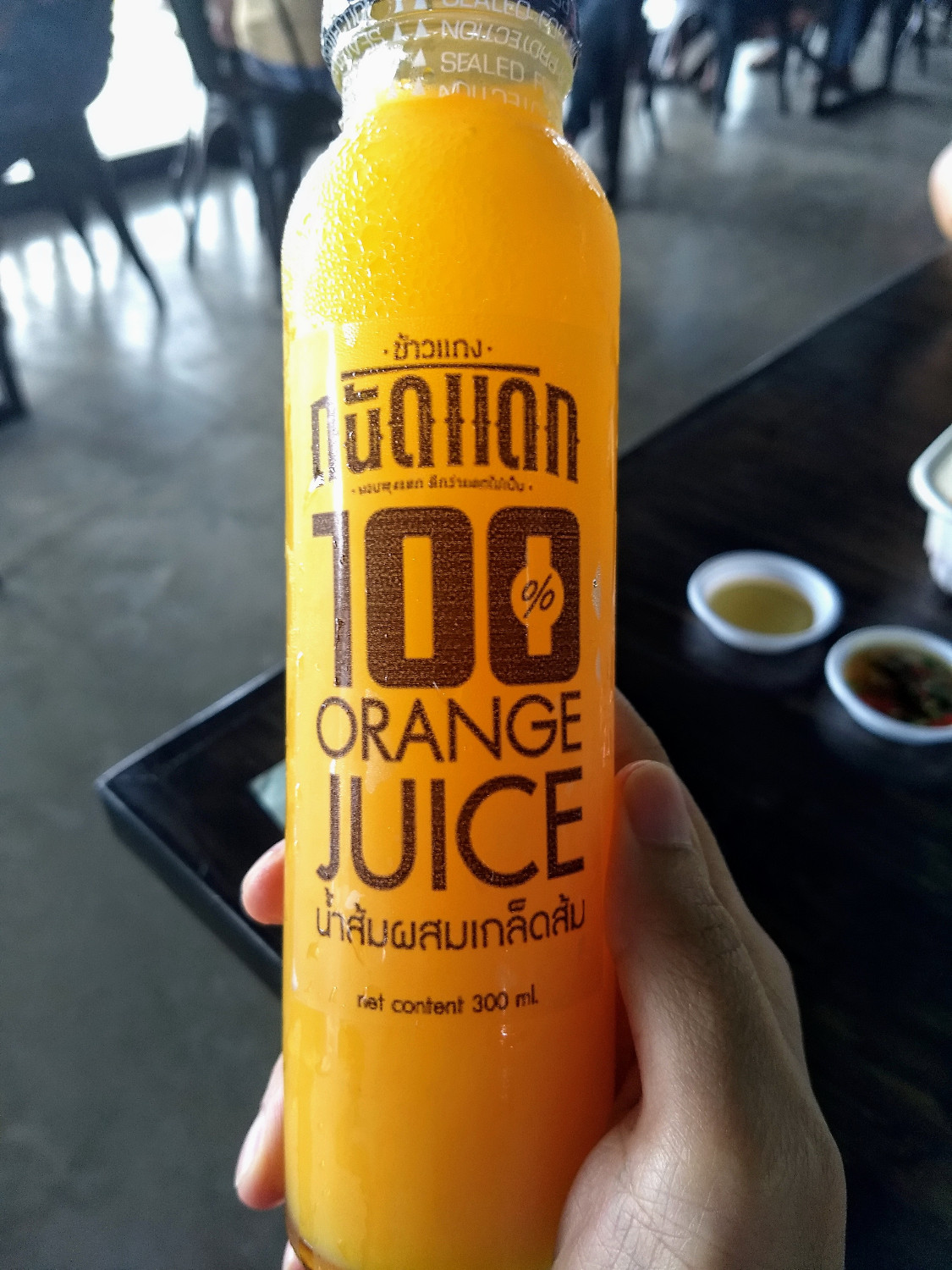 ไหนจะจากกันแล้ว ขอแถมของหวานทานง่ายกันอีกสักอย่าง น้ำส้มผสมเกล็ดส้มยี่ห้อ ข้าวแกงถนัดแดรก ขวดละ 80 บาท ขวดใหญ่กว่าขวดน้ำขนาดธรรมดาประมาณหนึ่ง ดื่มแล้วหวานเปรี้ยวกำลังเย็นชื่นใจ ความจริงเค้าไม่ได้ใส่เกล็ดส้ม แต่ใส่เนื้อส้มมาเต็มๆ ซดไปทีไม่ระวังเนื้อส้มไหลเข้าคอเป็นลูก 55555 ถือว่าเป็นของหวานปิดท้ายได้ดี เอาไปเลย 4.5/5