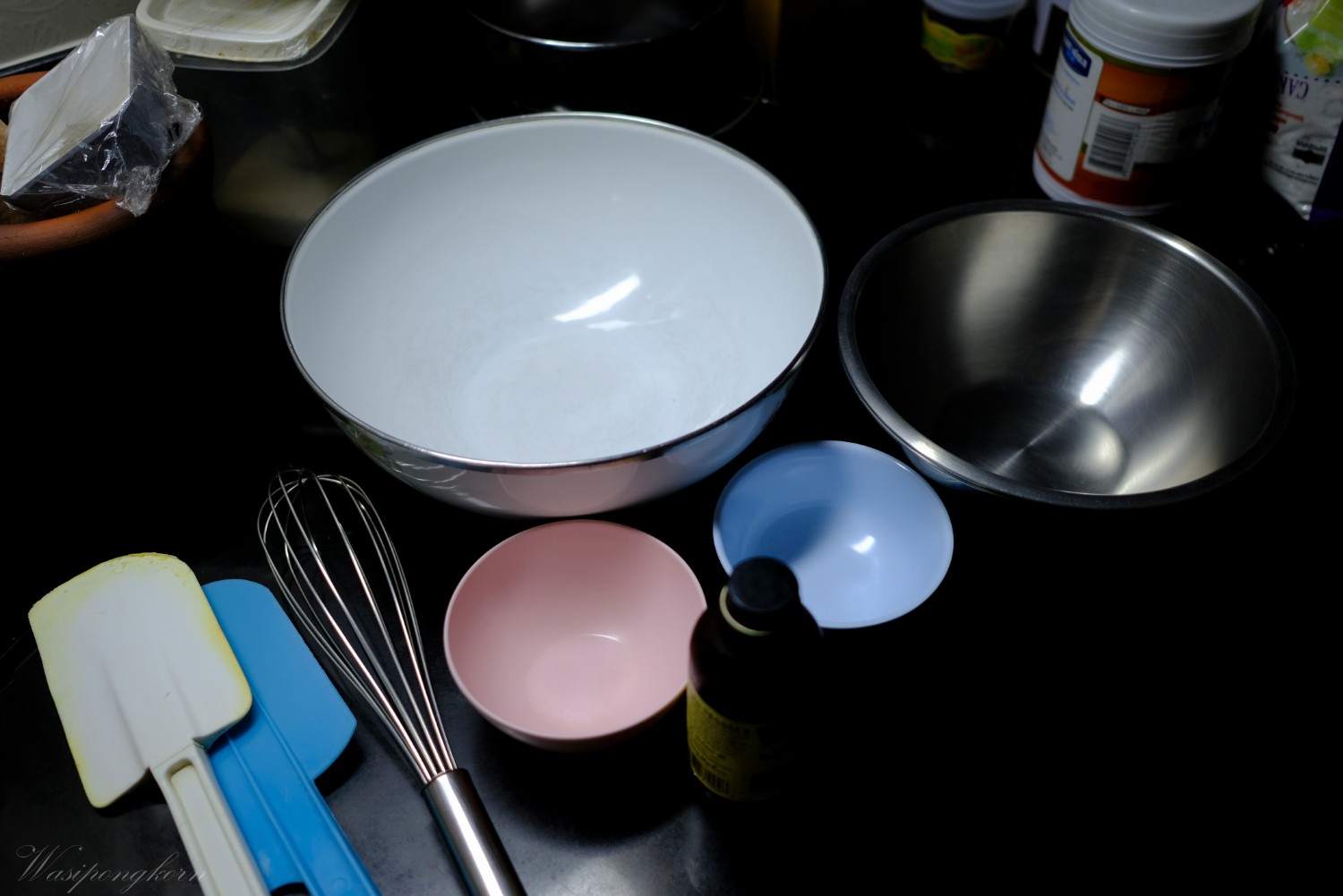 อุปกรณ์ที่จำเป็นต้องมี พวกเครื่องตี ตะกร้อ ไม้พาย เตาอบ เครื่องชั่ง พวกนี้จำเป็น เครื่องตีถ้าไม่มี แล้วจำเป็นต้องตีเมอแรงค์ ผมรับรองว่าเหนื่อยแสนสาหัส และเผลอๆ ตีไม่ขึ้นเอาด้วย ไม่มีก็ได้ แต่ใช้ตะกร้อเอา แต่เชื่อผมเถอะว่ามันต้องมี แต่ถ้าให้เลือกระหว่างเครื่องตีแบบตั้งโต๊ะกับ มือถือ แนะนำมือถือจะทำให้คุณสะดวกพลิกแพลงได้ง่ายกว่าเยอะ และ ครื่องชั่ง Digital จะทำให้การทำขนมง่ายขึ้นเยอะกว่าแบบเข็ม