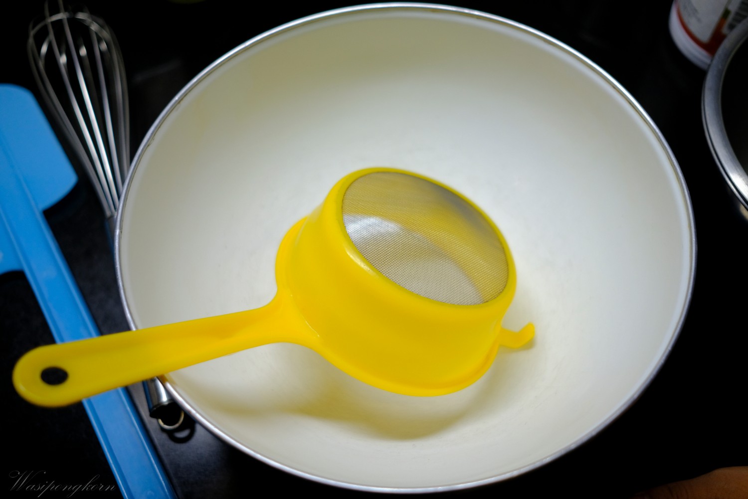 1. ร่อนแป้ง ให้เรียบร้อย เตรียมเครื่องส่วนผสมให้เรียบร้อย