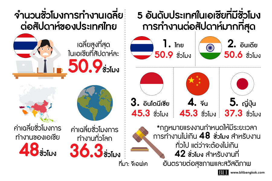 จากข้อมูลที่อยู่ในอินเตอร์เนตพบว่าประเทศไทยทำงานหนักหว่าเพื่อน จึงอยากทราบว่า
