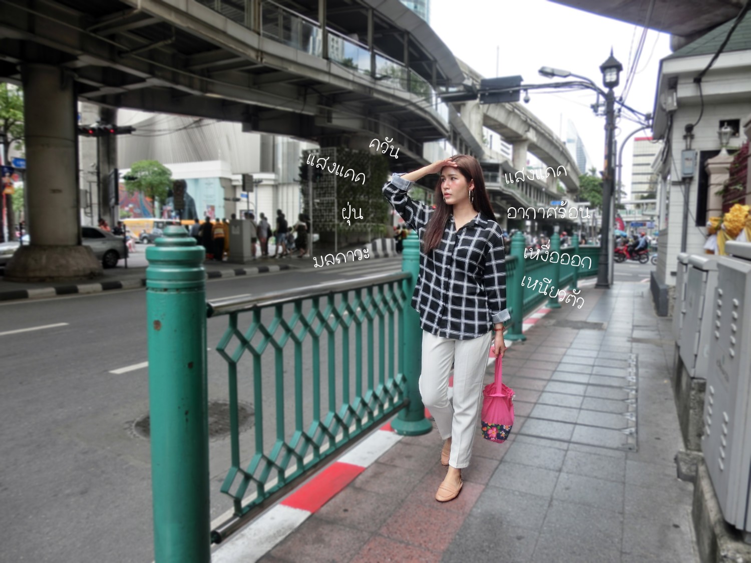 แต่พอพักเที่ยงออกมาทานข้าว เจอทั้งฝุ่น ทั้งควัน แสงแดด ไอความร้อน