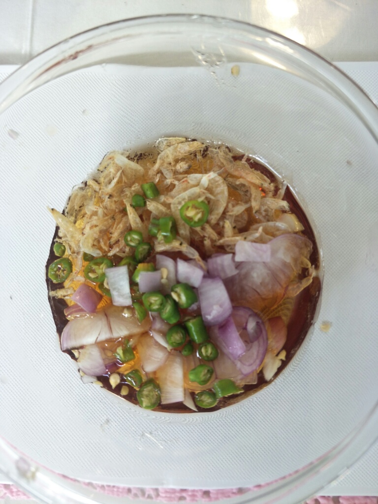 1. หั่นพริกขี้หนูและหอมแดง (ใส่ตามชอบเลยคะ) ใส่ลงในชามส่วนผสม
