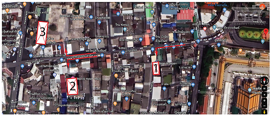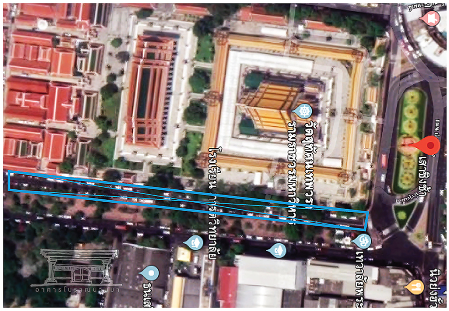 แผนที่ตำแหน่งพิกัดสถานที่ทั้ง 3 อาคาร คล้ายการเดินตามลายแทงสมบัติรับลองน่าจะถูกใจคนชอบแนวนี้แน่ๆ มะเรามาเริ่มกันโดยเราจะเริ่มเดินจากเสาชิงช้าเข้าสู่ ถนนบำรุงเมือง