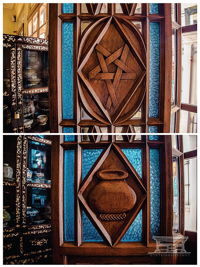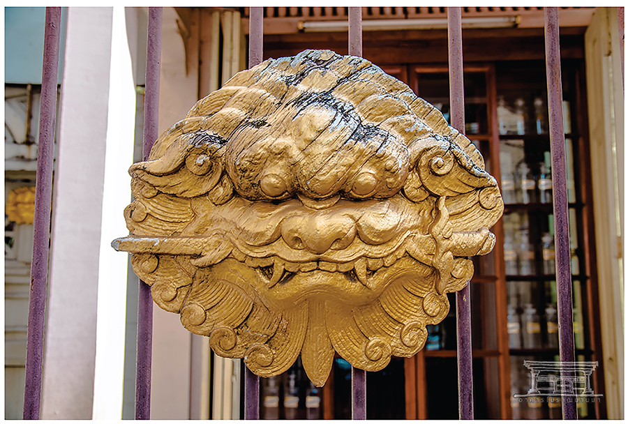 หน้าบานประตูสลักเป็นรูปเฉลวและหม้อยาก็สื่อถึงอุปกรณ์ที่ใช้ในการแพทย์แผนโบราณถือว่าเป็นอาคารที่น่าสนใจเปรียบเสมือนเป็นอาคารที่ยังมีชีวิตเพราะยังมีคนอยู่อาศัยและสามารถพูดคุยถึงอดีตความเป็นมาของอาคารได้ ร้านบำรุงชาติสาสนายาไทย เปิดเวลา 09.00-16.00 น. ทุกวัน โทร. 0-2221-8070