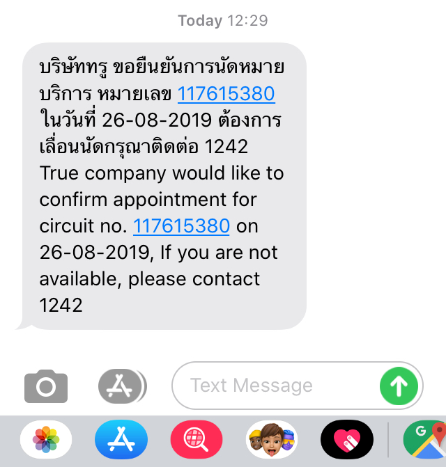 เจ้าหน้าที่บอกจะให้ช่างมาเปลี่ยนวันที่ 26 ช่วงเช้า ตอนเที่ยงก็มี SMS ยืนยันมา
