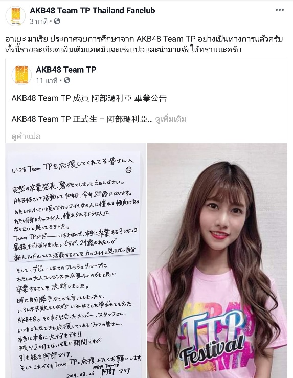 อาเบะ มาเรีย เพื่อนสนิทร่วมรุ่น10 ของรินะประกาศเเกรดซะเเล้ว