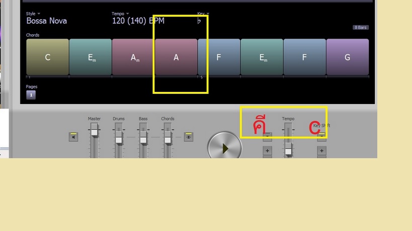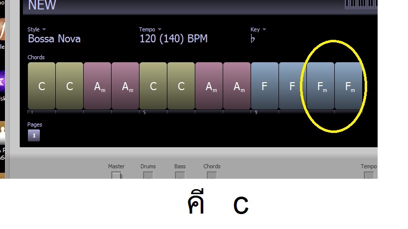 ทดลอง สร้างทำนองเพลงง่ายง่าย ตามภาพ ใช้ คี c พอ ตอนท้ายทำนอง ใช้ เสียง b ต้องไปดึง chord