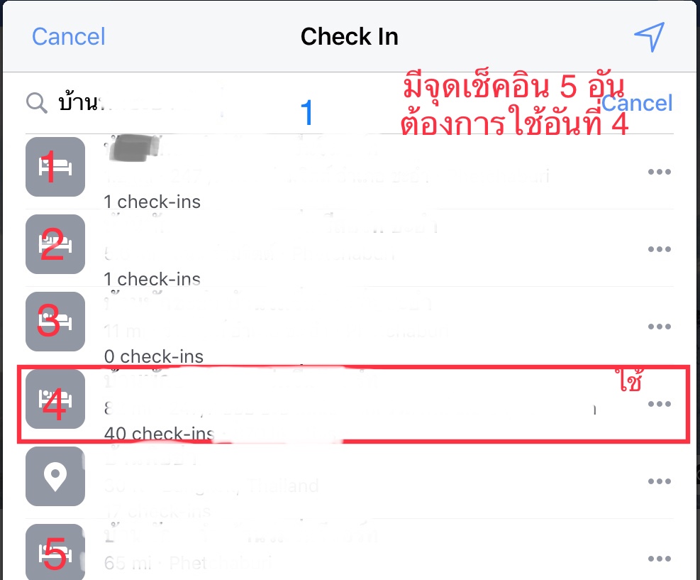 -ต้องการลบจุดเช็คอินอันเก่าที่ยังขึ้นในเฟสบุ๊ค ออกทั้งหมด. ( ใช้ no 4 อันเดียว )