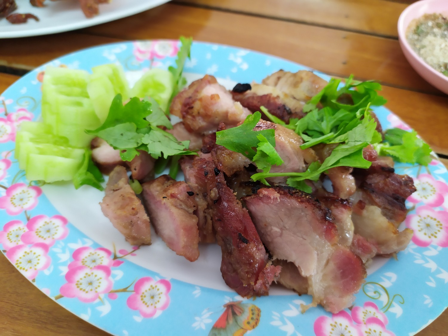 คอหมูย่างค่ะ ไม่เคยเห็นคอหมูย่างที่แห้งขนาดนี้มาก่อน