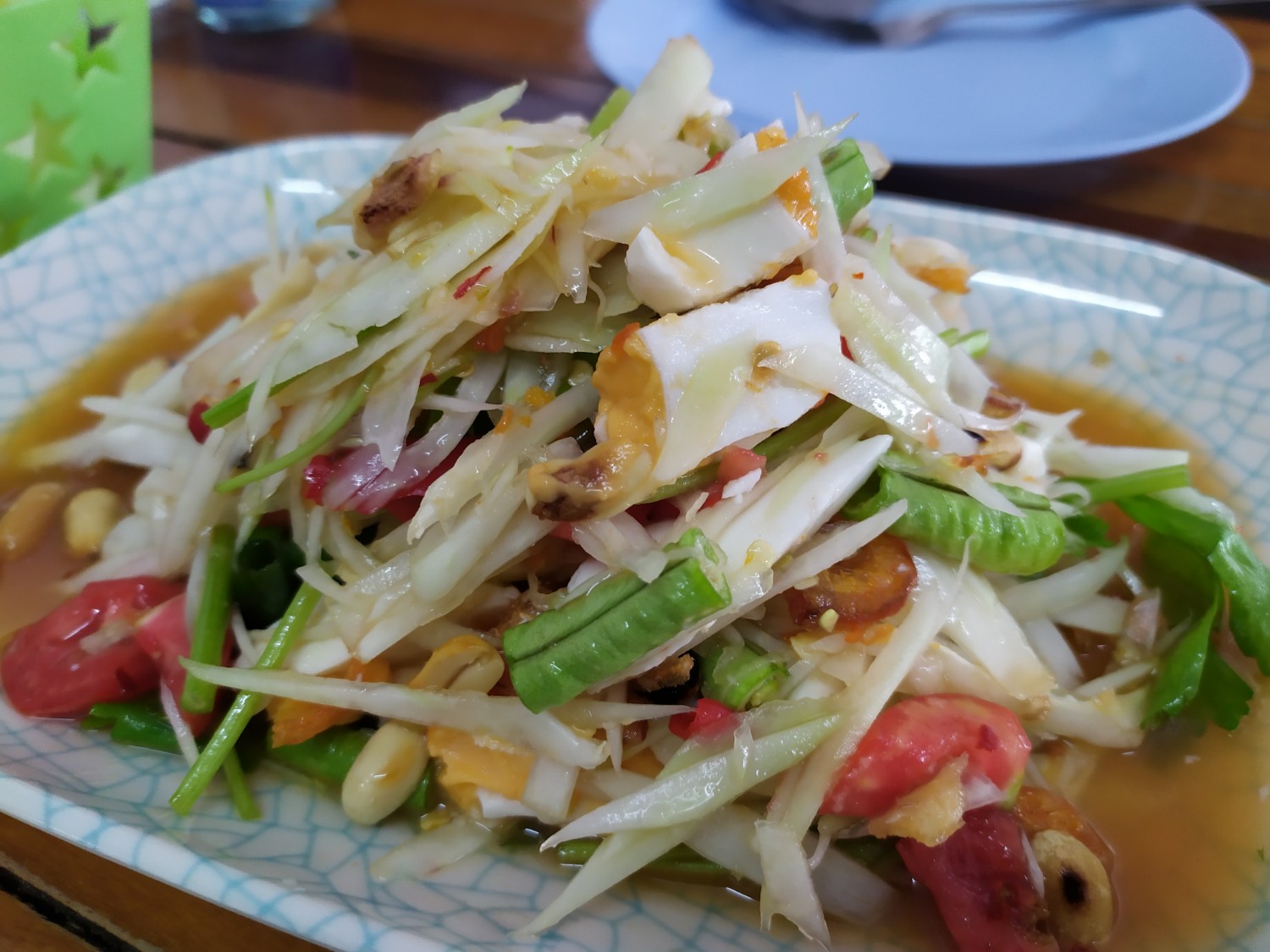จานนี้ชวนงงหน่อยๆ ค่ะ สั่งตำไทยไข่เค็มเผ็ดน้อยไป รสชาติหวานๆ