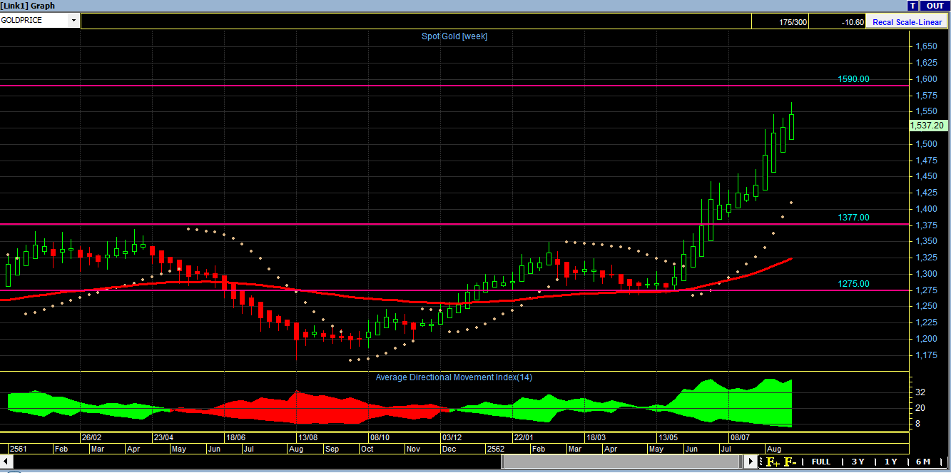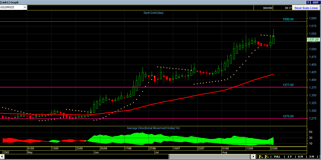 2)สำหรับคนที่มีแล้ว วาง stop loss ไว้ที่ 1500 หรือ 1420 (ถ้าหลุด 1420 โยนทิ้ง) มีเป้าหมายอยู่ที่ 1590, 1798, 1924 เมื่อได้ของแล้วห้ามขายเด็ดขายถ้า ADX ใน TF Day ยังไม่เปลี่ยนสีจากเขียวเป็นแดง หรือ หลุดแนวรับ 1420