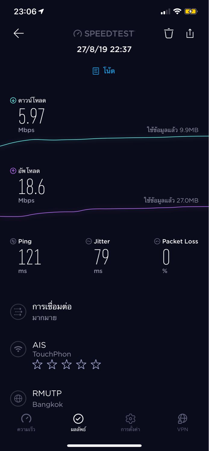 ความเร็วก็ไม่เสถียรเลย ที่ห้องความเร็วแรงสุดก็ไม่เกิน 35 Mb นึกว่าใช้ 2G อยู่ เอไอเอสโครตช้า