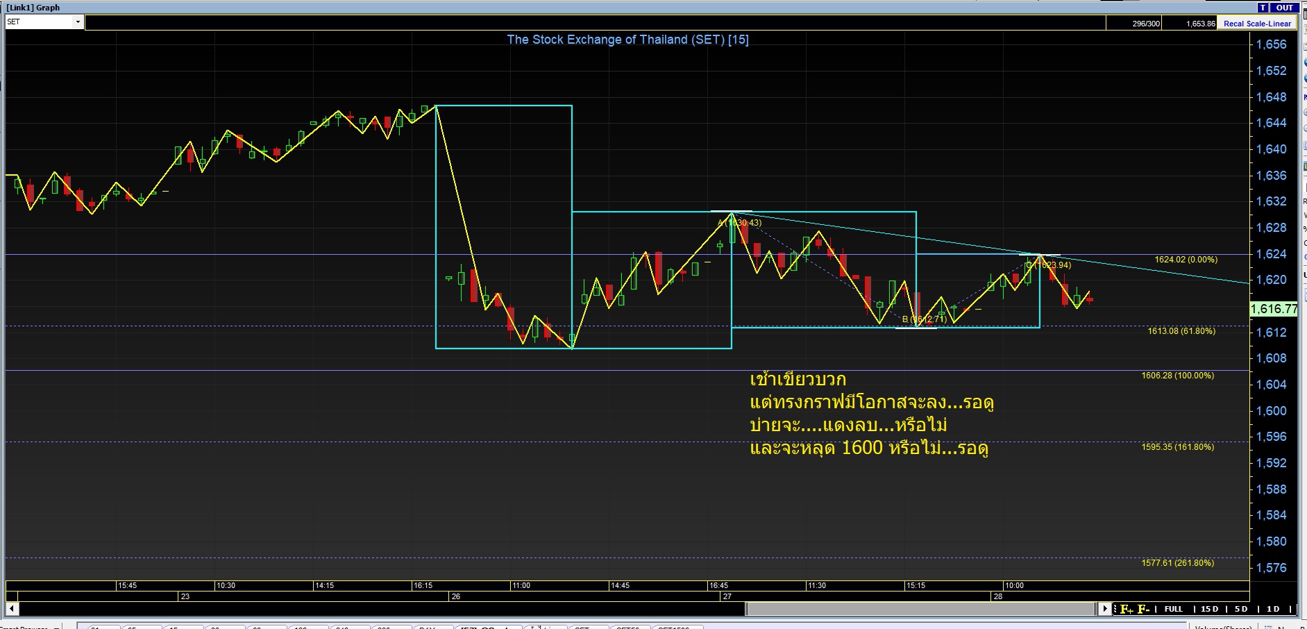 เช้าเขียวบวก บ่ายจะ...แดงลบ...หรือไม่ และจะหลุด 1600 หรือไม่........รอดูว่า...ขาใหญ่จะพยุงเขียวบวกต่อไปหรือเปล่า