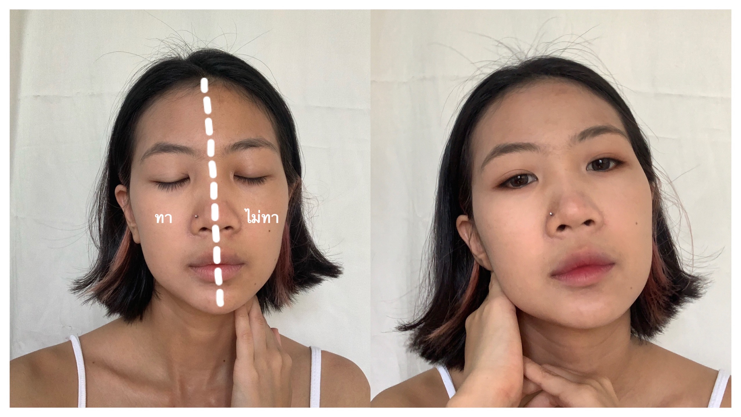ดูทางซ้ายของเรา ทาข้างเดียวก็เรียกได้ว่า ปกปิดอยู่นะแบบเนียนๆ และหน้ามันๆของเราก็หายไปเลยจ้า ตามสโลแกนแต่เดิมของนางเลย เนียนกริบ! และมันก็ดูเปนธรรมชาติอ่ะ ไม่โป๊ะ ถือว่าให้ๆ ก็ต้องให้ กับเจ้าศรีจันทร์ตัวใหม่นี้