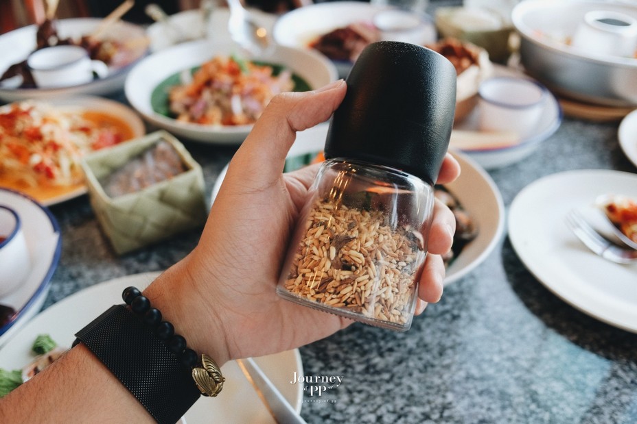อย่างที่บอกว่าเหมือนขาดอะไรในน้ำตกไส้อ่อน เราเลยขอข้าวคั่วมาใส่