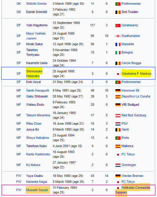 จากรายชื่อทีมชาติญี่ปุ่นชุดใหญ่ มีรายชื่อนักเตะจาก เจลีก1 แค่3ทีมเท่านั้น คือ