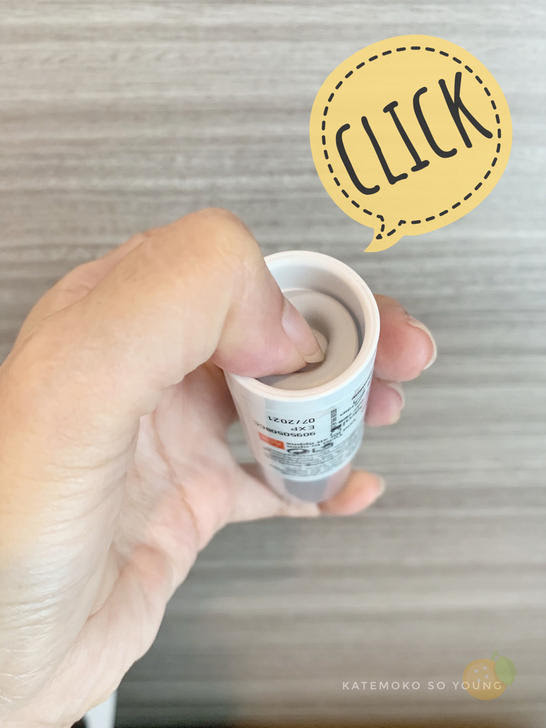 เริ่มจาก ด้านล่างขวดจะมีฟรอยด์สีเงิน ให้แกะออก จะเห็นปุ่มสีเทา