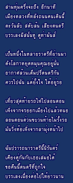 จากคุณ แฟนขับ TT 001 ขอเพลงบ้างนะครับ ของ ELO - Ticket to the Moon http://pantip.com/topic/32628100 / Confusion http://pantip.com/topic/32663024 หรือ Last Train to London ก็ได้ ไม่ว่ากัน ... ค้างอยู่