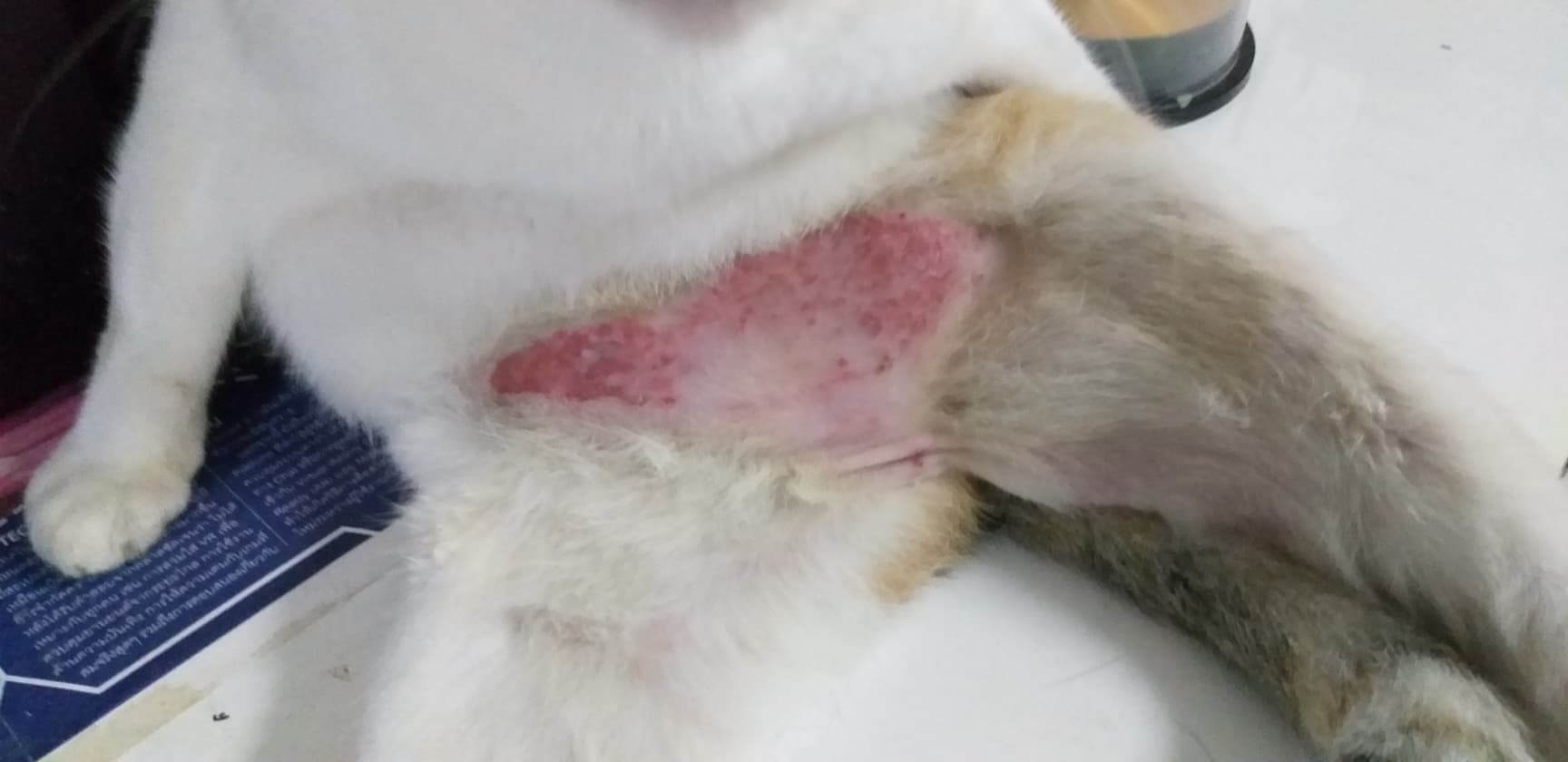 ผมอยากจะหายาใส่ให้ก็กลัวน้องจะเลียยาที่ทาไว้ สภาพแบบนี้พอทราบไหมครับ? รบกวนด้วยครับ
