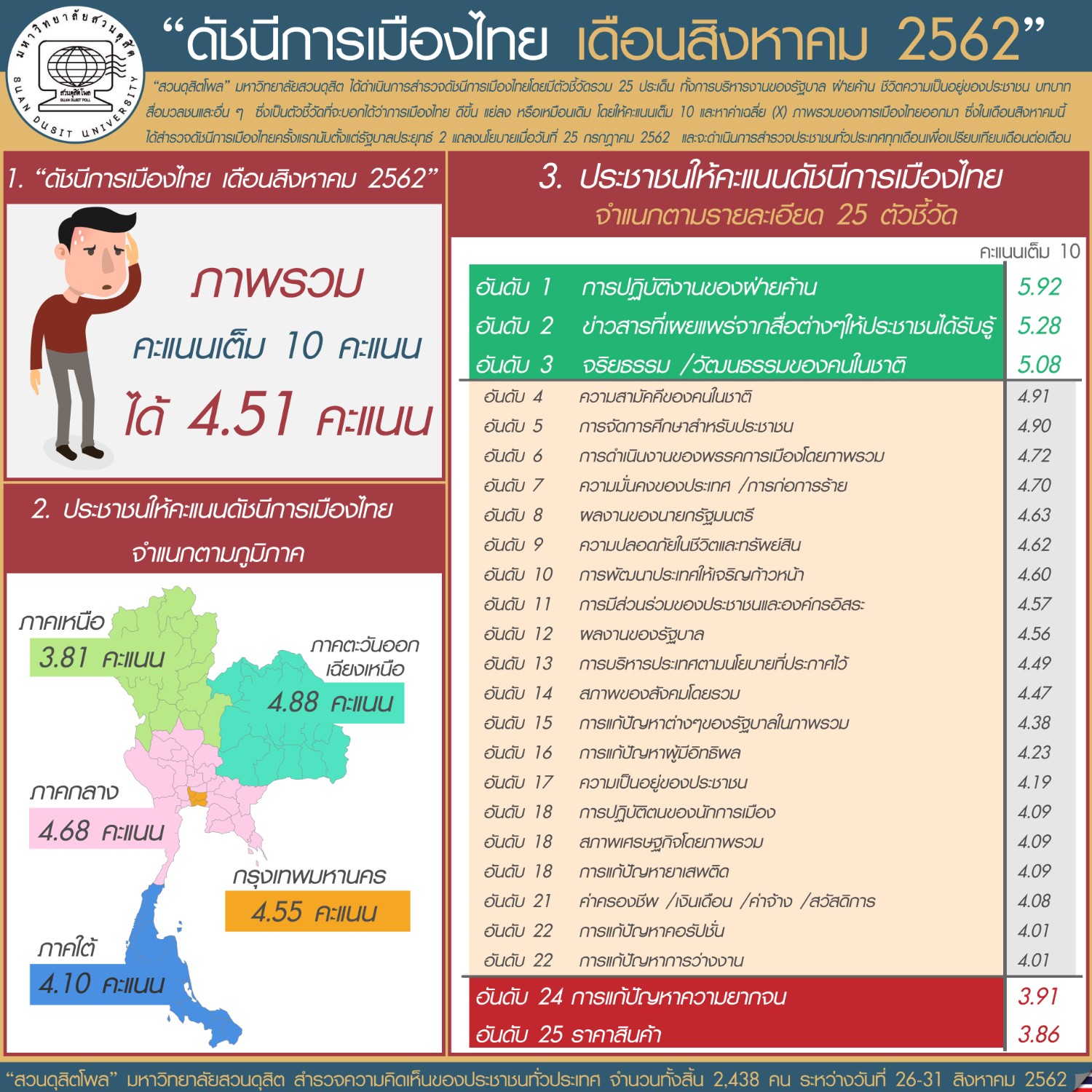 สรุปผลการสำรวจความคิดเห็นของประชาชน เรื่อง “ดัชนีการเมืองไทย เดือนพฤศจิกายน 2562” http://suandusitpoll.dusit.ac.th/WEB/survey-result/2621/ #SuanDusitPoll #สวนดุสิตโพล #Dusi