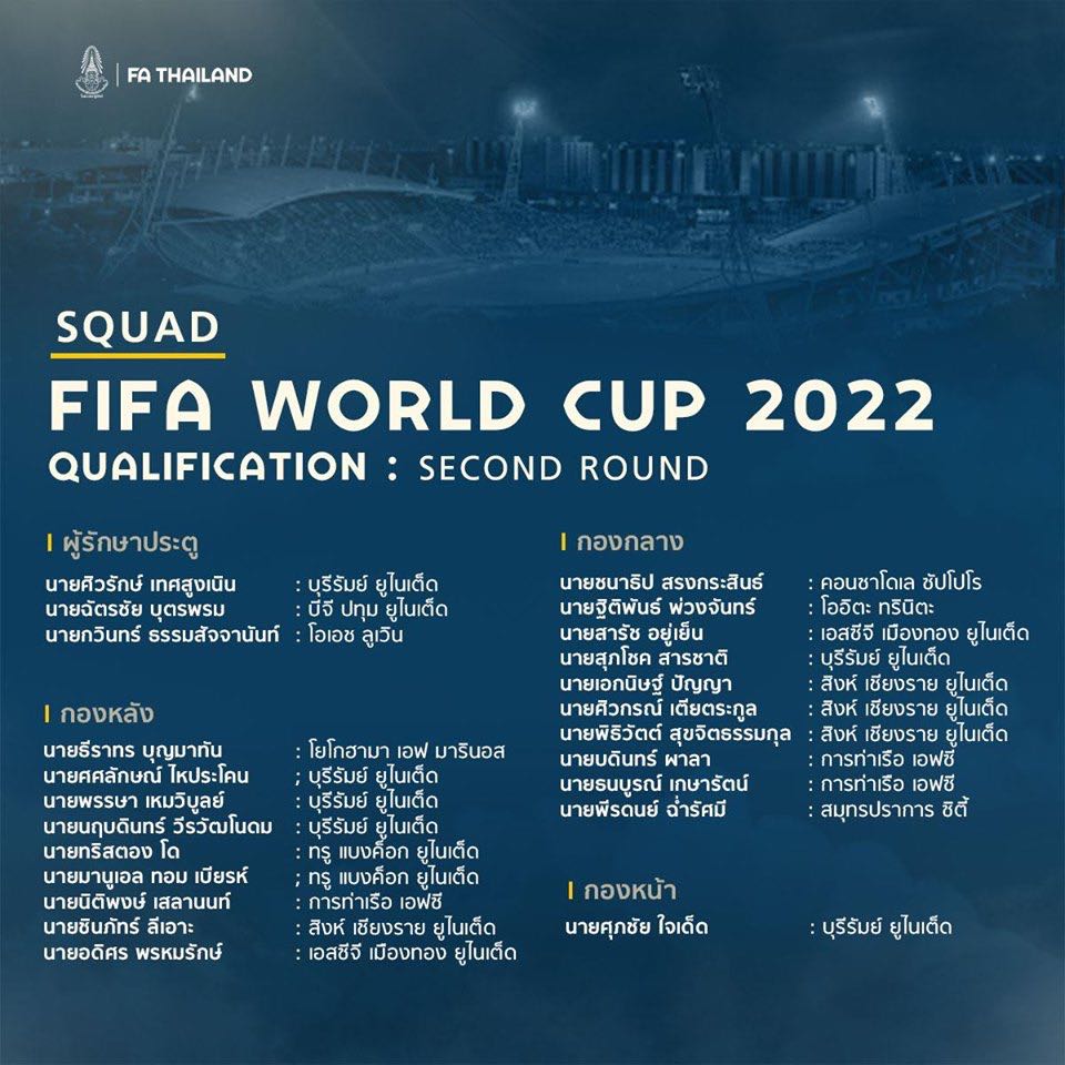 ประกาศรายชื่อ 2นัดแรก คัดฟุตบอลโลก พ.ย. 2023