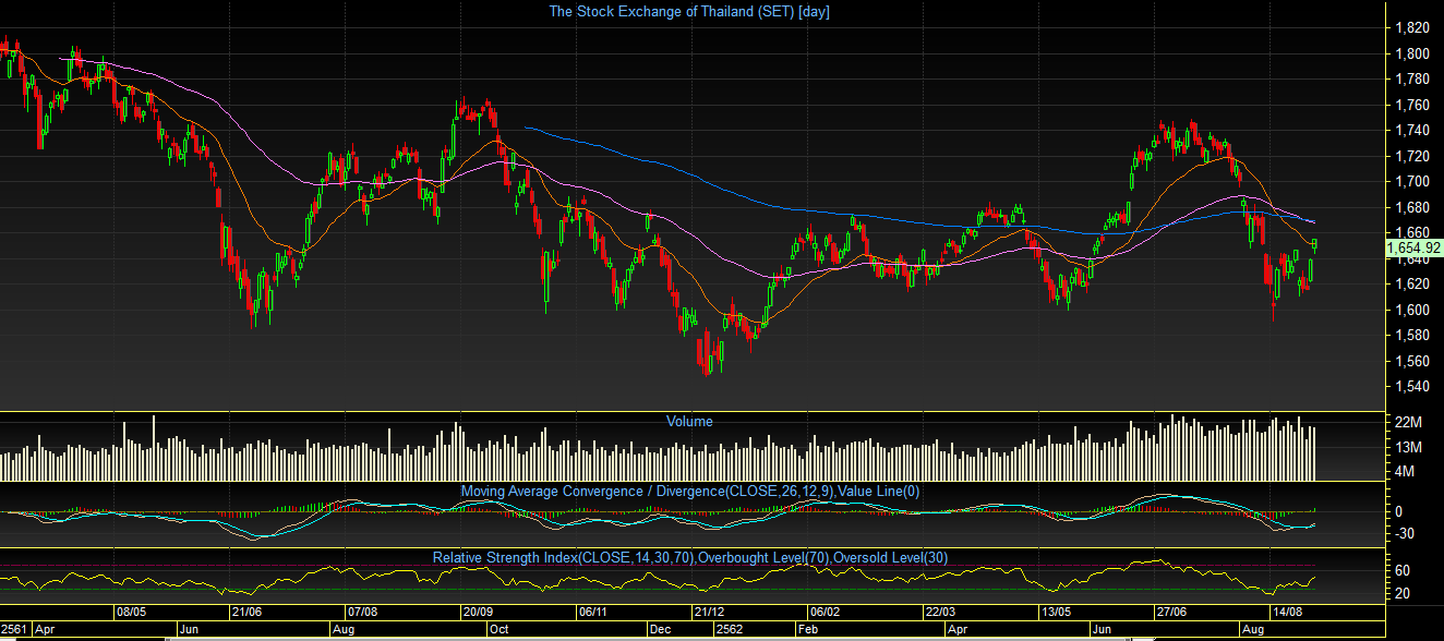 SET index TF Day: ตลอดทั้งสัปดาห์ที่ผ่านมา ดัชนีเคลื่อนไหวเหวี่ยงตัวอย่างรุนแรง โดยกรอบการเคลื่อนไหวอยู่ระหว่าง 1609 – 1654 จุด