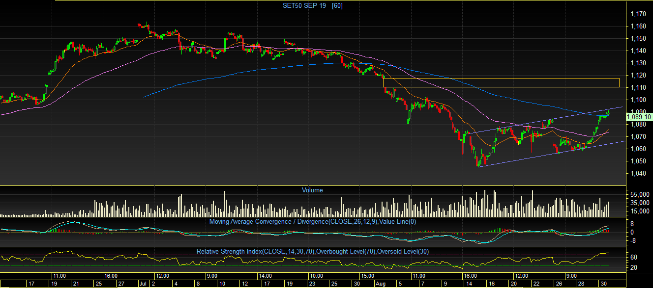 ถ้าหากผ่านขึ้นไปได้ ก็มีโอกาสที่จะทะยานขึ้นไปปิด Gap ที่เคยเปิดทิ้งไว้ ณ ระดับ 1118 จุด แต่ถ้าหากไม่สามารถผ่านขึ้นไปได้ อาจเห็นการ