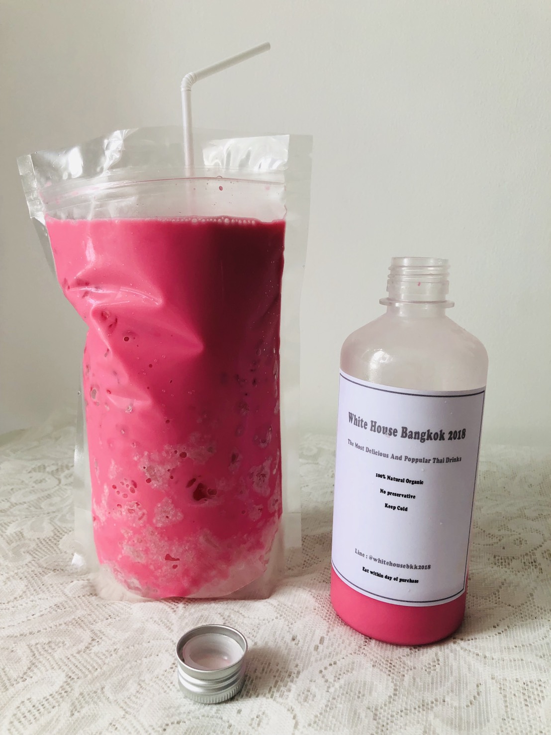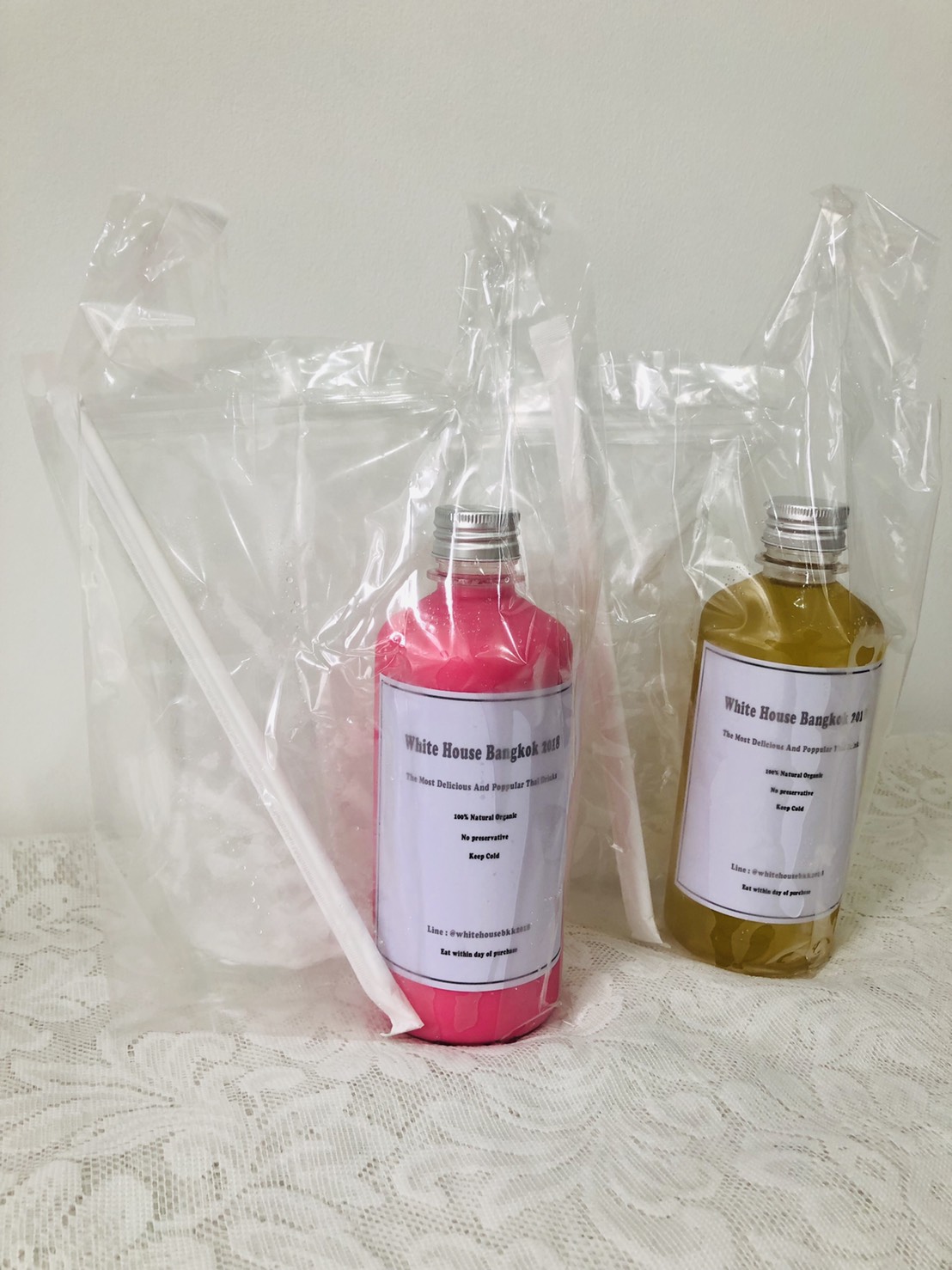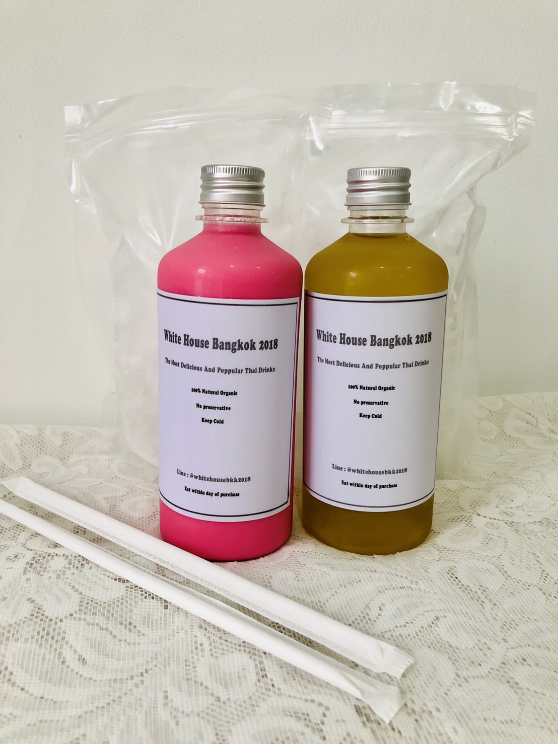 นั่นก็คือ น้ำใบเตยกับน้ำนมเย็นจากร้าน White House Bangkok 2018 จ้าาา