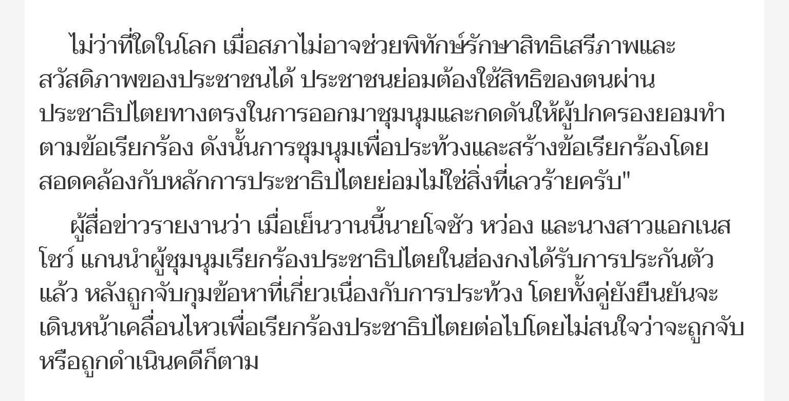 ทั้งนี้ ผมตั้งข้อสังเกตเล็กน้อยครับว่า ที่รัฐบาลฮ่องกงมีการยอมถอยการผลักดันกฎหมายส่งตัวผู้ร้ายข้ามแดน (ถึงแม้จะเพียงแค่แขวนเอาไว้ ไม่ได้ยกเลิกไปเลย) ก็เป็นผลอันเนื่องมาจากประชาชนชาวฮ่องกงใช้สิทธิในการชุมนุม ซึ่งนับเป็นประชาธิปไตยทางตรง