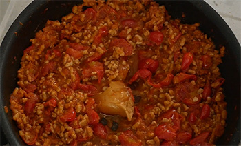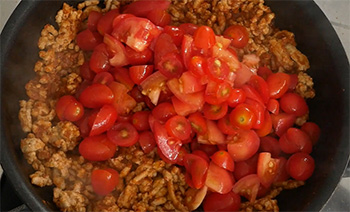 2. จากนั้นใส่มะเขือเทศลงไป แล้วรอจนมะเขือเทศอ่อนตัวค่ะ ระหว่างนี้ถ้าน้ำพริกแห้งไป ให้เติมน้ำเปล่าเป็นระยะๆค่ะ
