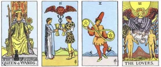 ลักษณะภายนอก,อาชีพเนื้อคู่/คนที่แต่งงานด้วย -ใบที่1 The lovers -ใบที่2 Ace of wands -ใบที่3 The chariot -ใบที่4 Justice