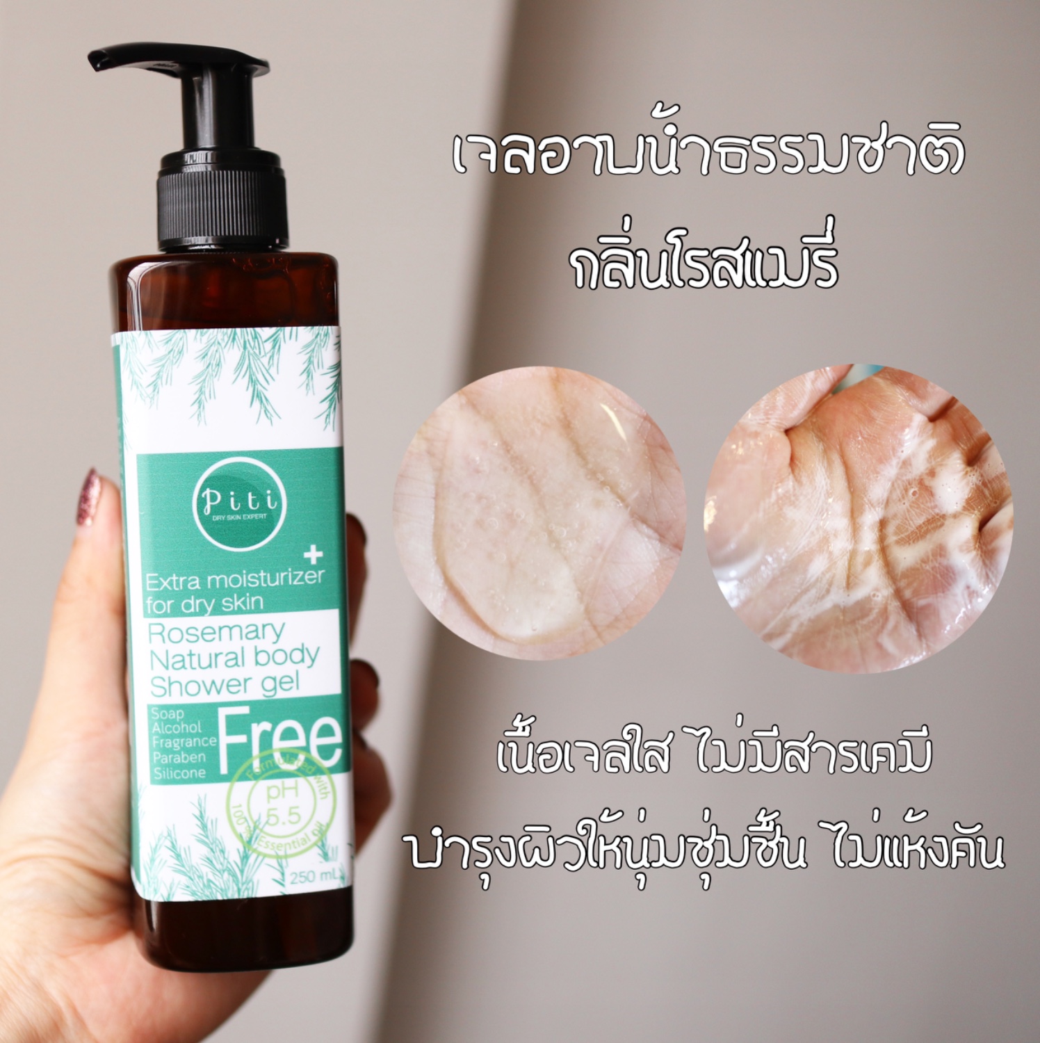 #เจลอาบน้ำธรรมชาติ 💜 กลิ่นโรสแมรี่ สำหรับผิวแห้งคันโดยเฉพาะ ไม่มีสบู่ ไม่ทำลายน้ำมันหล่อเลี้ยงตามธรรมชาติที่เคลือบผิว แพรใช้แล้วผิวไม่แห้งตึง หลังอาบไม่รู้สึกคันยิบๆที่ผิวเหมือนเดิม อาการผิวแห้งดีขึ้น เป็นเจลอาบน้ำที่เหมาะกับผิวแห้งมากๆ