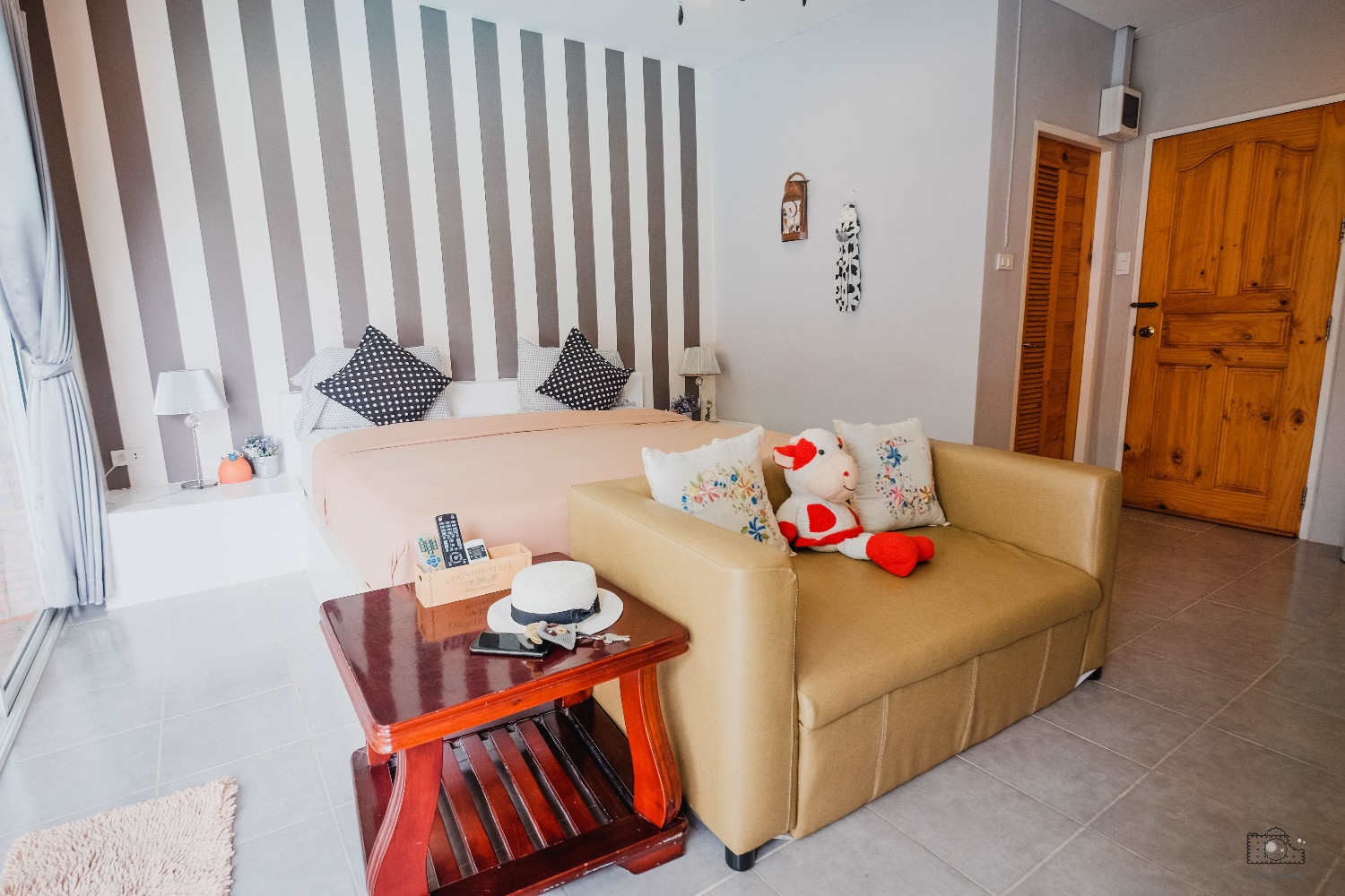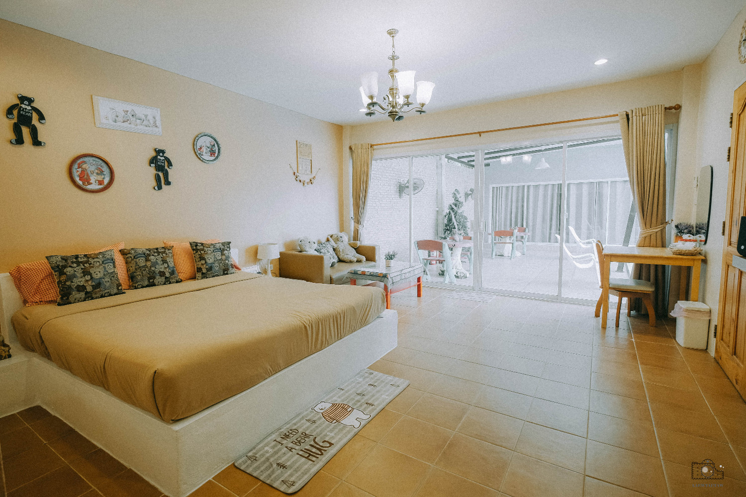- บ้านพักแบบ 1 ห้องนอน และ 1 ห้องน้ำ มีระเบียงนั่งเล่นส่วนตัวใกล้สระว่ายน้ำ