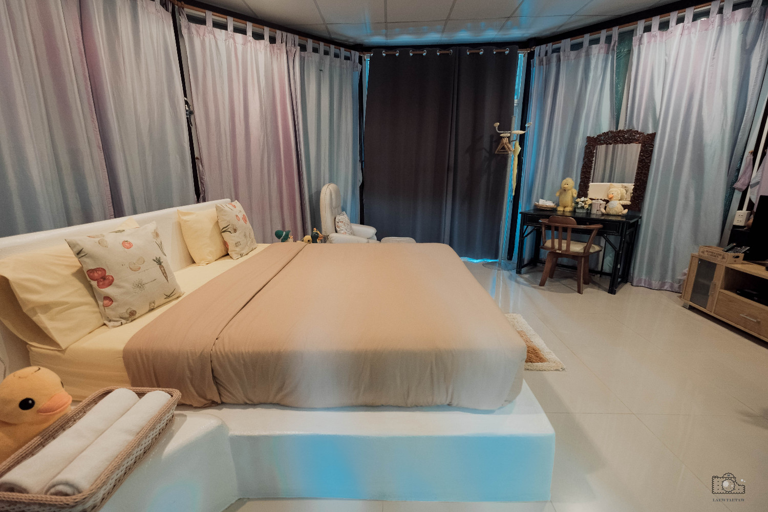 ห้องมีขนาดกว้าง อยู่ติดกับสระว่ายน้ำ แม้แต่กุญบ้านก็ยังเป็นรูปวัวเลยน้า