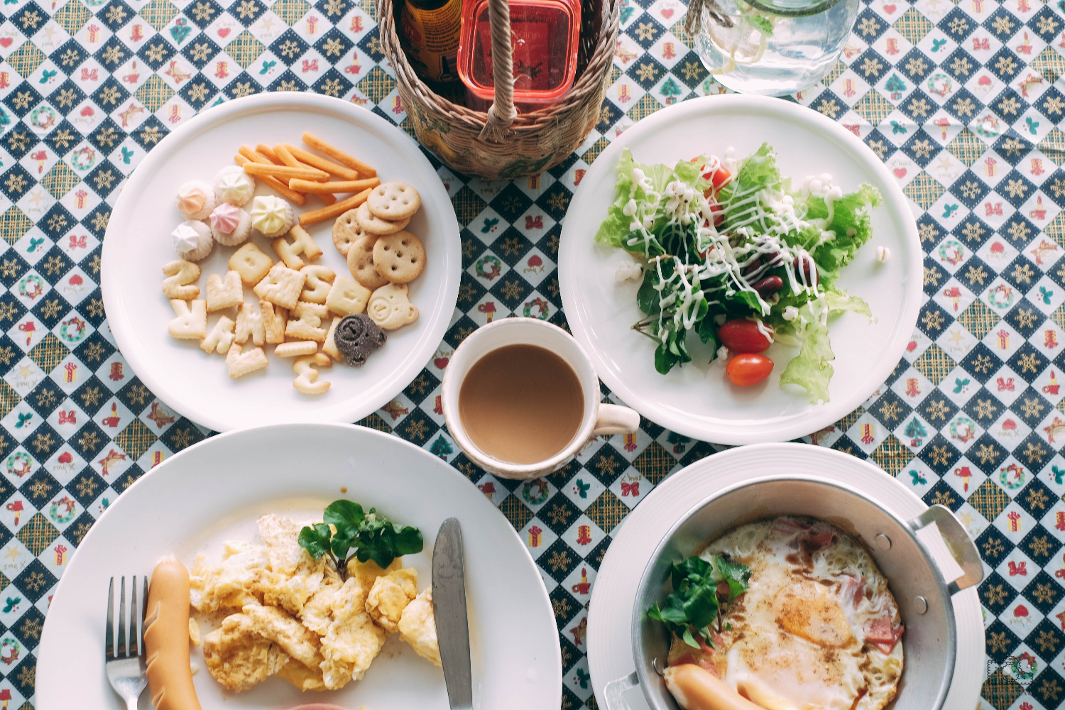 อาหารเช้าจะมีไข่กะทะกับABF มุมชา กาแฟ โอวัลติน ขนมปังกรอบ