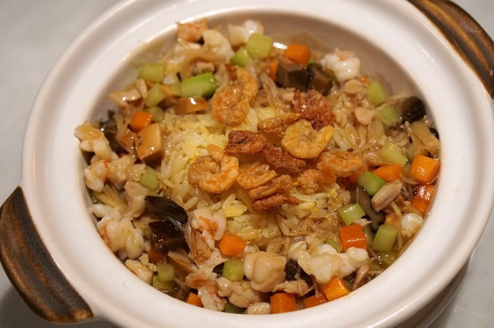 สำหรับเมนูข้าววันนี้เราลองสั่งนี้คือข้าวผัดเป่าฮื้อที่ทางร้านนำข้าวไปผัดแบบจีนจนแห้งร่วน ใส่โปรตีนลงไปมากมายคือกุ้ง กุ้งแห้ง กังป๋วย เป่าฮื้อ และไก่หั่นเต๋า นอกจากนี้ยังมีเห็ดหอม แครอท และผักต่างๆ ปิดท้ายด้วยการราดซอสเป่าฮื้อลงไปอีกที ตัวซอสรสนุ่ม มีกลิ่นหอมอ่อนๆของหอยเป่าฮื้อ ตัดกับกลิ่นของกังป๋วย เสิร์ฟมาในหม้อขนา2ใหญ่ เมนูนี้เสิร์ฟให้ทานขณะที่ซอสยังร้อน โดยรวมถือว่าอร่อยใช้ได้เหมือนกัน (14/20)