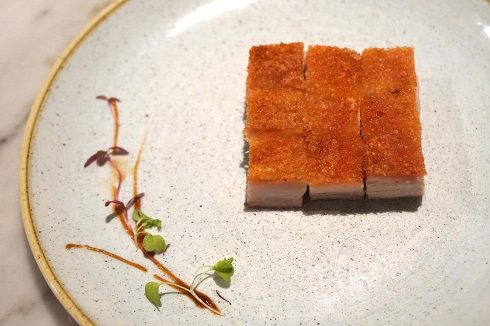 สุดยอดเมนูเเนะนำของที่นี่คือหมูกรอบห้าชั้นที่เชฟนำเนื้อส่วนท้องของหมูไปหมักและอบถึง 3 ครั้งจนหนังด้านบนกรอบเป็นสีเหลืองทอง ส่วนบริเวณชั้นไขมันถูกรีดออกไปทำให้ไม่เลี่ยน ส่วนเนื้อนุ่ม ละมุน มีรสเค็มอ่อนๆต่างจากหมูกรอบที่เจอในประเทศไทย มีกลิ่นหอม เเม้ว่าราคาอาจดูสูงเทียบเท่ากับที่เจอในฮ่องกง เเต่ถือว่าอร่อยสมกับเป็นเมนูแนะนำ (12/20)