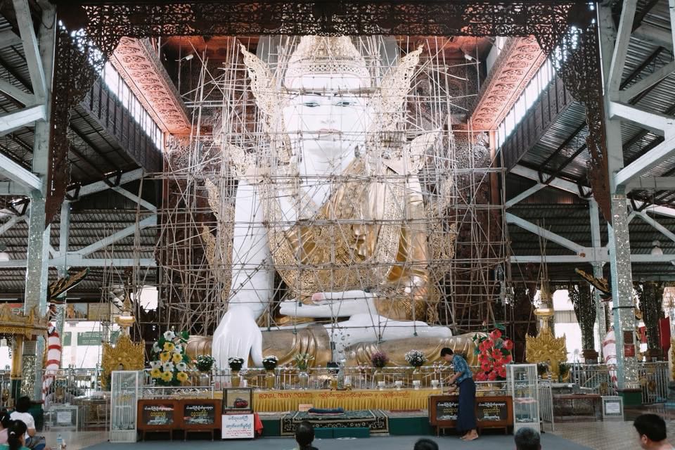 สวัสดีค่ะ วันนี้ขอมารีวิวไหว้พระที่พม่านะคะ อย่างว่า "สายบุญไม่ค่อย" คือมากันแบบไม่ได้แพลนเลยค่ะ เป็นวันหยุดเสาร์อาทิตย์ที่ชีพจรลงเท้ามาก เอ้าลุยยยยย เดินทางช่วงเดือนพฤษภาคมนะคะ พอมาถึงที่ย่างกุ้งก็คือคนไทยเยอะมาก ส่วนมากจะเป็นกรุ๊ปคนมีอายุมาไหว้พระกันค่ะ พอผ่านตรวจคนเข้าเมืองมาแล้ว เรื่องการเดินทางออกจากสนามบินไปยังที่พัก มีทั้งรถเมล์ และแท๊กซี่ แต่เราพอศึกษามาบ้างว่าถ้าเราขึ้นรถเมล์เราก็อาจจะลงไม่ถูก แล้วก็กลัวด้วย ส่วนแท๊กซี่ก็กลัวโดนโกงมิเตอร์ค่ะ เลยตัดสินใจเรียก grab taxi ค่ะ รอสักพักก็ได้มาแล้วววว เช๊คทะเบียนรถเรียบร้อยไปค่ะ ออกเดินทางกัน ขอเกริ่นก่อนนะคะ ว่าทริปนี้เราไม่ได้แพลนจริงๆค่ะ พอขึ้นพี่grab taxi พี่เค้าก็ถามว่ามีแพลนไปไหนกันบ้าง (คนขับเป็นพม่า พูดภาษาอังกฤษได้ดีเลยค่ะ แต่อาจมีไม่ชัดบ้างต้องตั้งใจฟังนิดนึง) เราก็ตอบเค้าว่าไม่มีเลยไม่ได้แพลน เพราะเรากะว่าให้เค้าไปส่งที่เทพทันใจ แล้วจะหาทางไปเองกันต่อ เพราะเอาจริงๆตั้งใจมาแค่เทพทันใจนี่แหละ แต่พี่เค้าก็เลยยื่นขอเสนอให้ ว่าเหมาเค้าไหม เค้าคิดคนละ 500บาท เห้ยยย ก็ดีดิ ดีกว่าขึ้นๆลงๆรถ แล้วไม่รู้จะเจอดีดีแบบนี้ไหม พอมาถึงวัดเค้าก็ปล่อยเราลงแล้วไปหาที่จอดรถค่ะ แต่พี่เค้าไม่ทิ้งเราเลยนะ จอดรถเสร็จรีบพาไปด้านในแนะนำนู้นนี่ พาซื้อตั๋ว แล้วก็ที่สำคัญคนขายของเยอะมากกกก พี่เค้าโคตรดีเลยค่ะ คอยบอกว่าอันไหนจำเป็นต้องซื้ออันไหนไม่จำเป็น พาเราตรงดิ่งไปที่เทพทันใจ ซื้อแค่ชุดไหว้ แล้วก็สอนว่าต้องทำแบบไหนยังไง แล้วที่สำคัญถ่ายรูปให้ด้วยค่ะ ป้ะไปดูกันนนน...