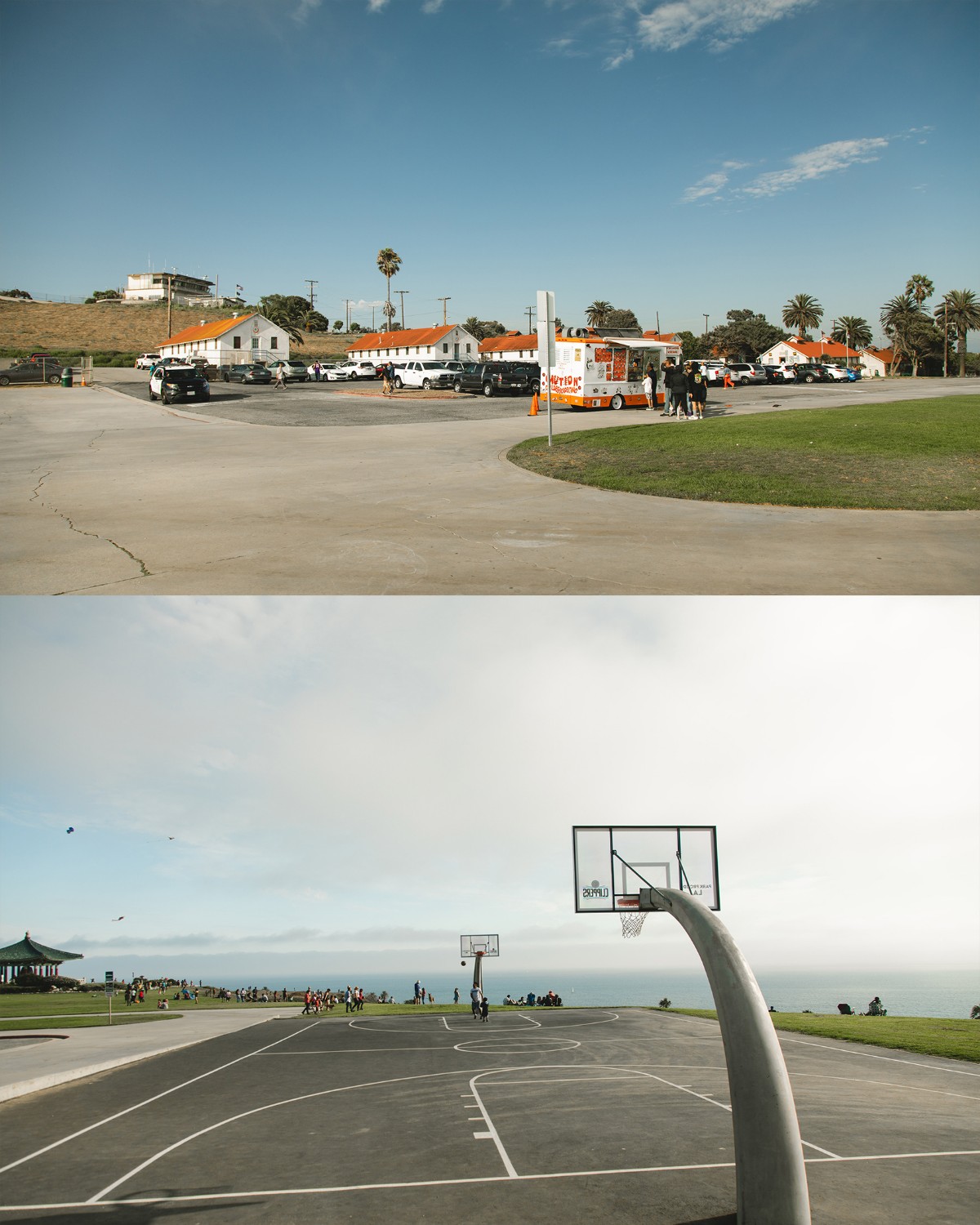 ส่วนตรงข้างๆจะมีสนามบาสเกตบอลกับวิวท้องทะเล มองไปเห็นรอบๆสวยงามมากๆ
