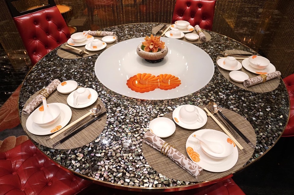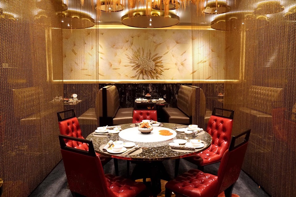 👉 ภายในร้านตกแต่งด้วยโทนสีแดงตามมาตรฐานร้านอาหารจีน โต๊ะมีทั้งที่นั่งทั่วไป โต๊ะส่วนที่มีม่านโซ่กั้น โต๊ะกลมสำหรับลูกค้าหลายท่าน และยังมีห้องส่วนตัวสำหรับลูกค้าที่มาเป็นครอบครัว บนโต๊ะอาหารตกแต่งด้วยลายและดอกไม้สีส้มเข้ากันกับตัวร้าน เก้าอี้ที่ร้านนั่งลำบากไปหน่อย การบริการของพนักงานอยู่ในเกณฑ์พอใช้ ดีกว่าร้านอาหารจีนทั่วไป แต่ยังไม่เชี่ยวชาญเท่าร้านอาหารยุโรป