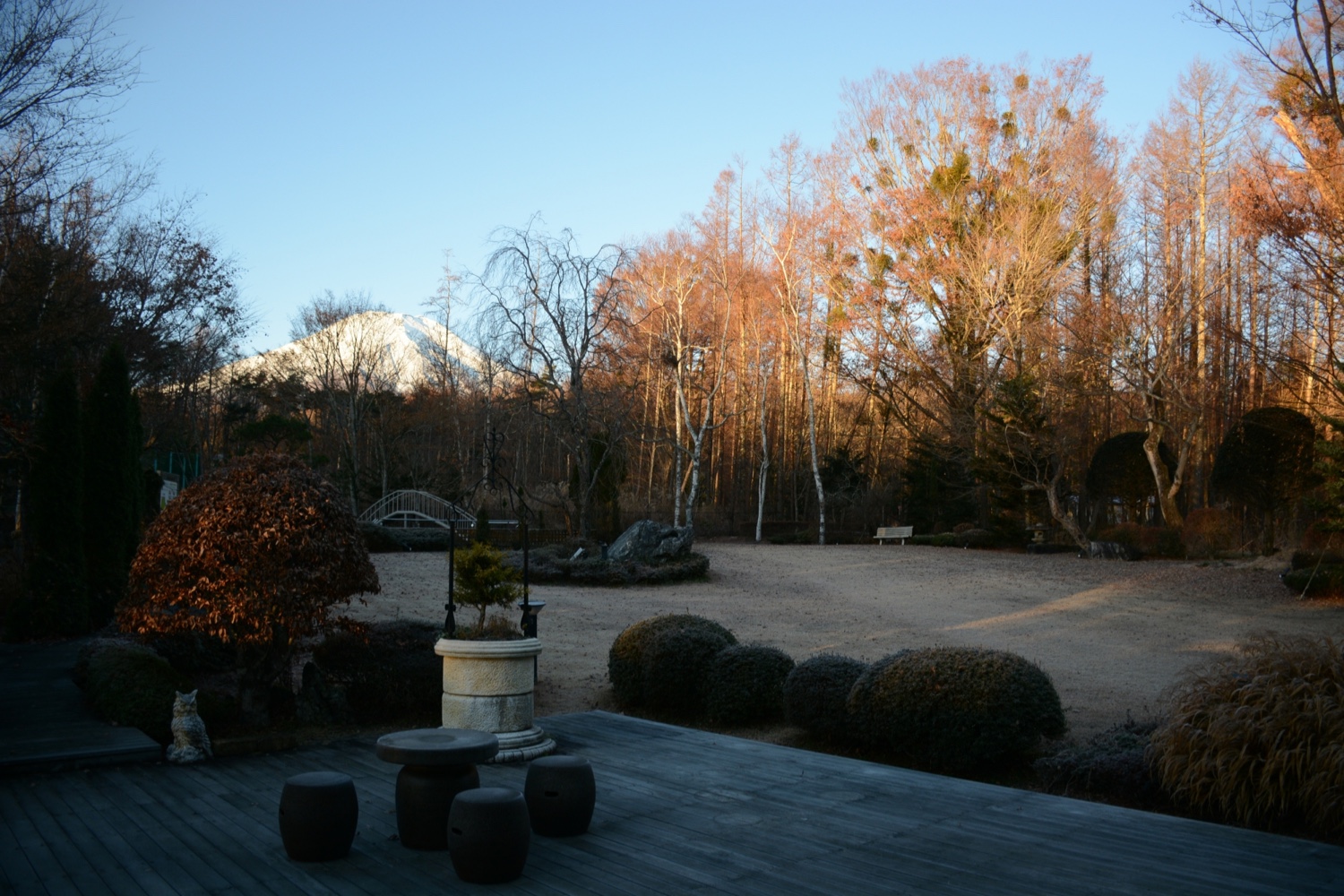 ด้านหลังที่พัก เป็นสวนแบบญี่ปุ่น นั่งชมสักพัก ก็กลับเข้าไปนั่งชมในห้องกระจก หนีหนาวให้เร็ว