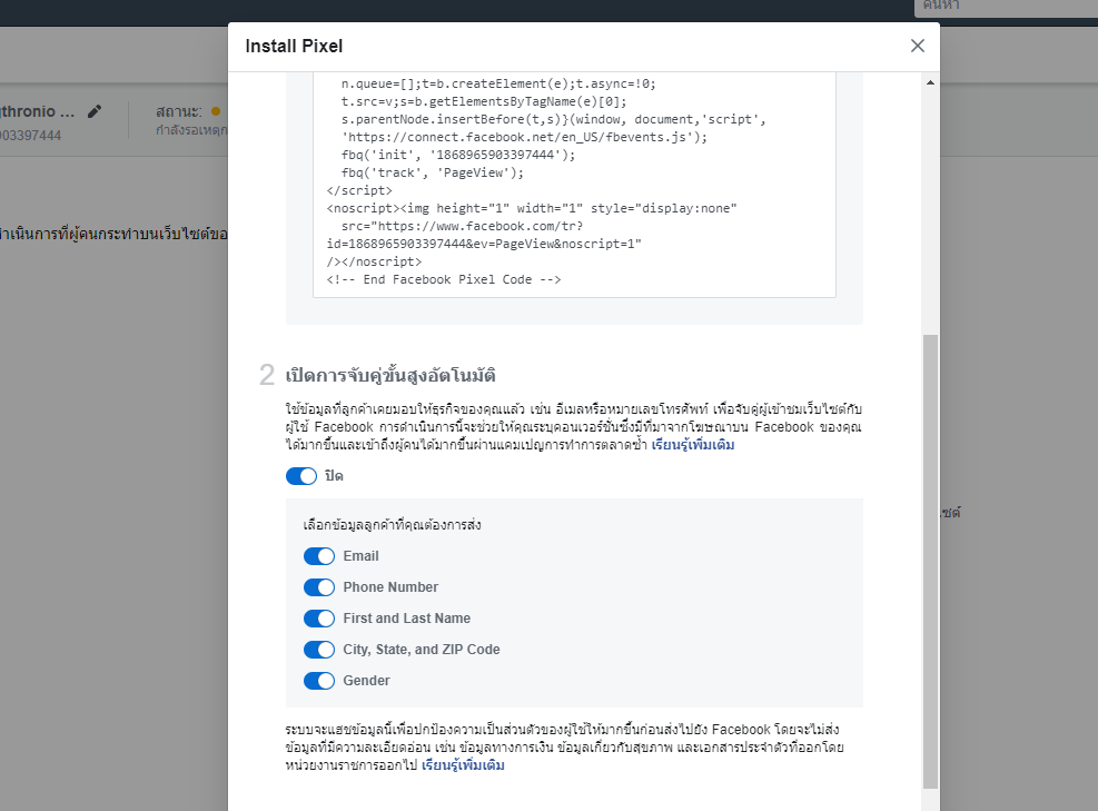รบกวนสอบถามการตั้งค่า Pixel ใน facebook ครับ